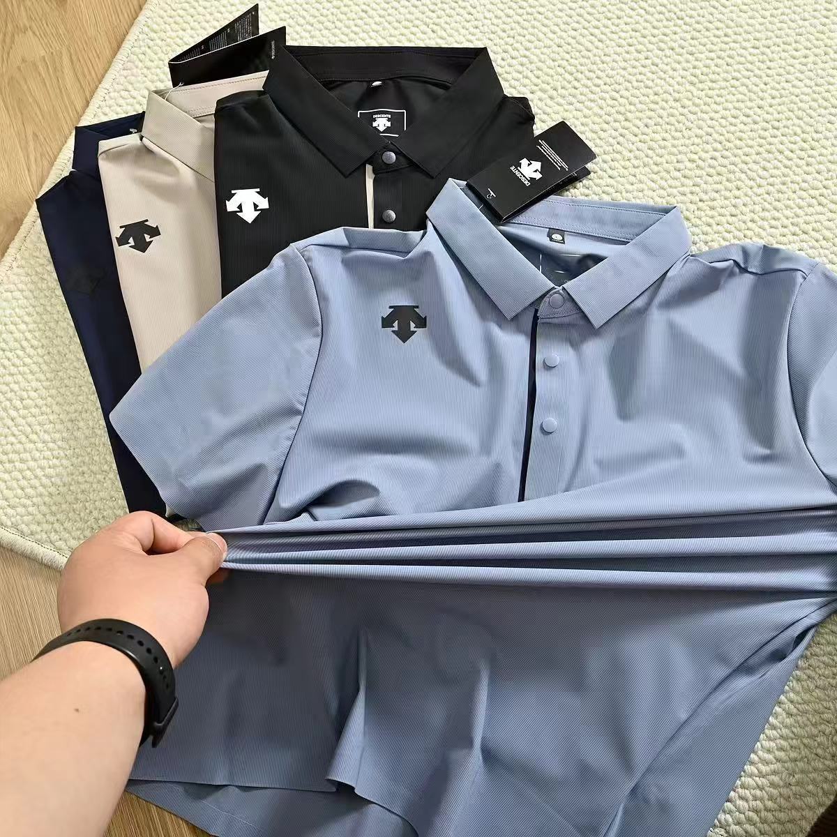 夏新款男士商务休闲Polo衫无痕压胶冰丝速干短袖T恤可户外可休闲,可商务的一款冰丝速干polo衫! 全部出口冰丝面料打造,手感凉爽细腻,这是毋庸置疑的!面料属于运动料,速干透气,弹性垂感抗皱,耐磨 款式非常不错,商务通勤,经dian无痕压胶POLO翻领设计,使整个线条更加流畅, 无论是日常运动,还是户外高尔夫,都是超棒!! 推荐给所有人,好东西别错过! 各方面都是非常牛的,好的POLO永远不会嫌多,强烈推荐给兄弟们 入手两件不过分!
