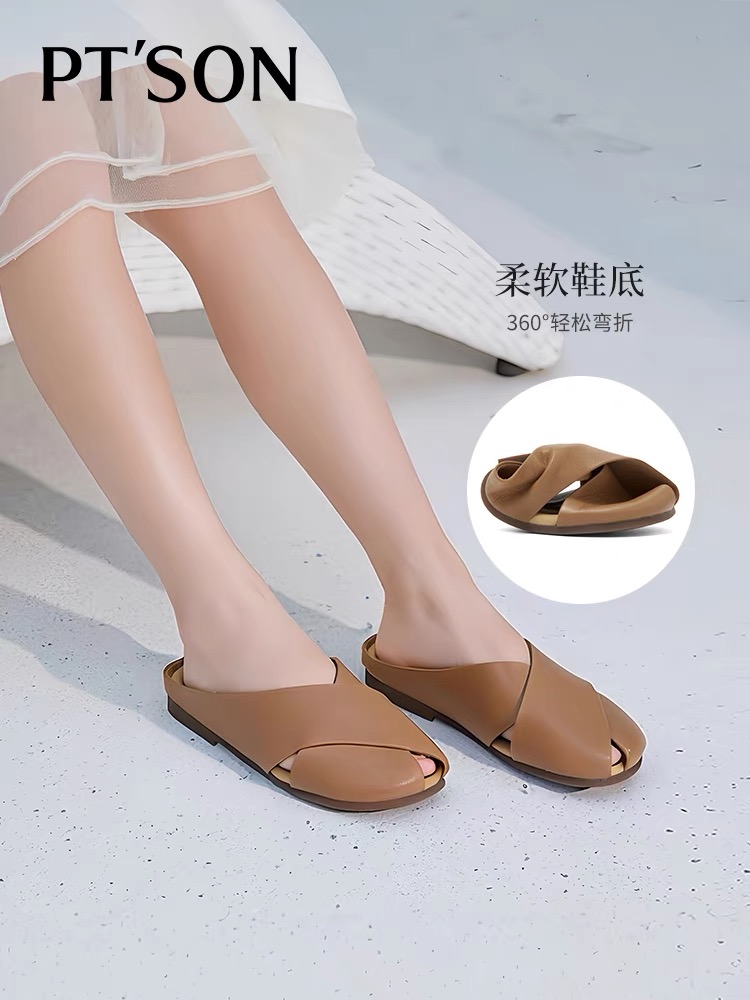 《云粉节》BF楼自由姿色(百田森)2025头层牛皮超火半包头拖PYQA5291D吊牌价980