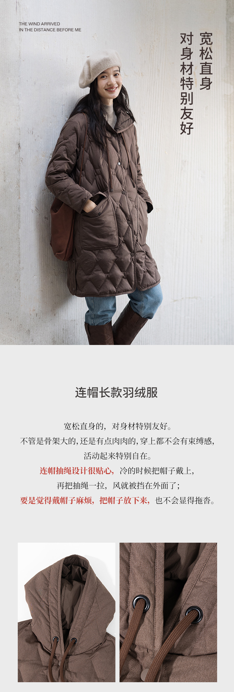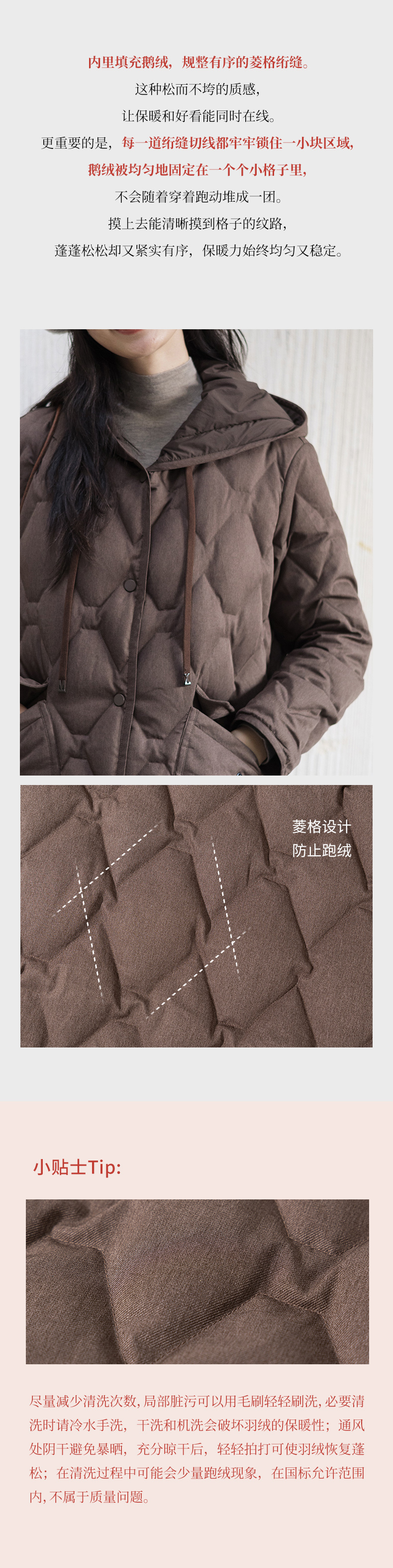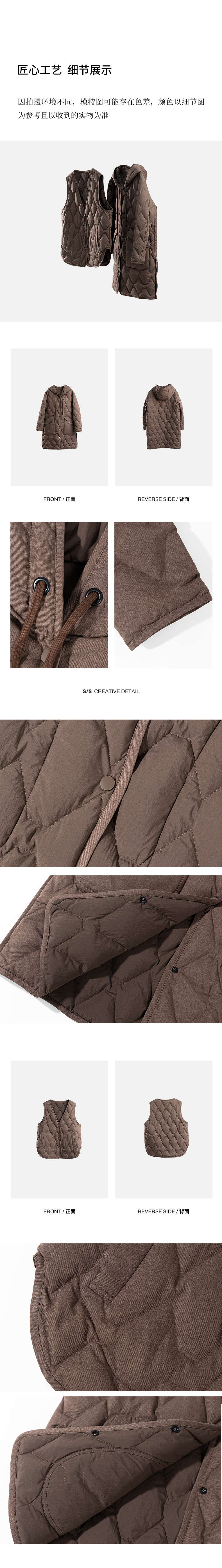绽放643朵/可可菱格羽绒服·90白鹅绒斜纹连帽中长款羽绒马甲女