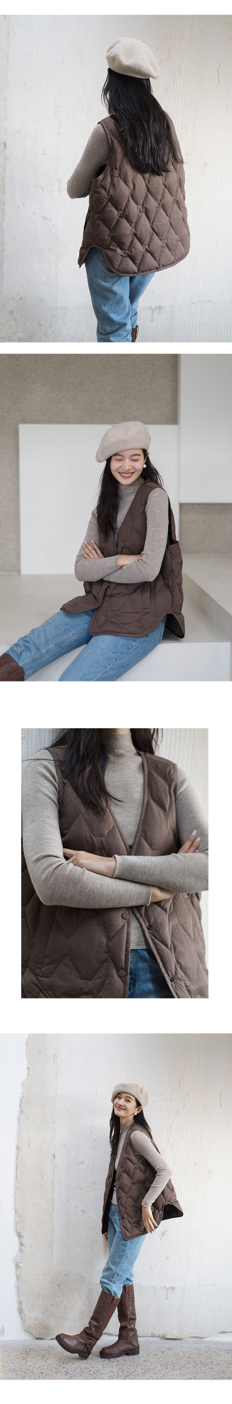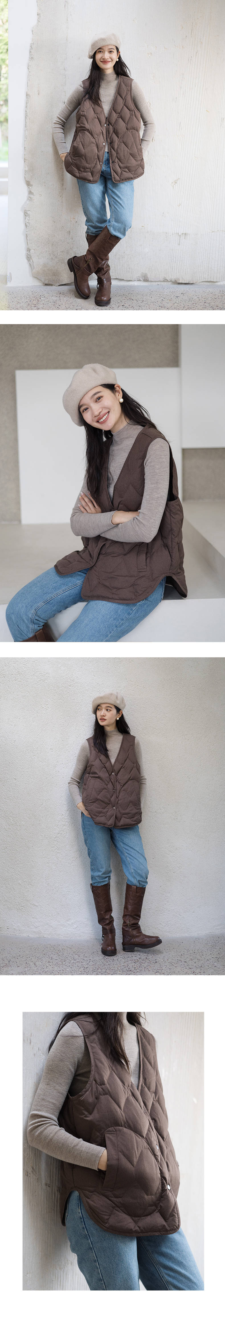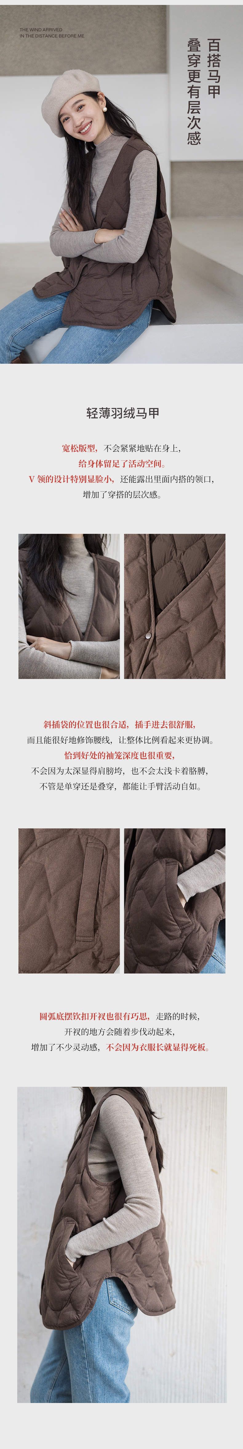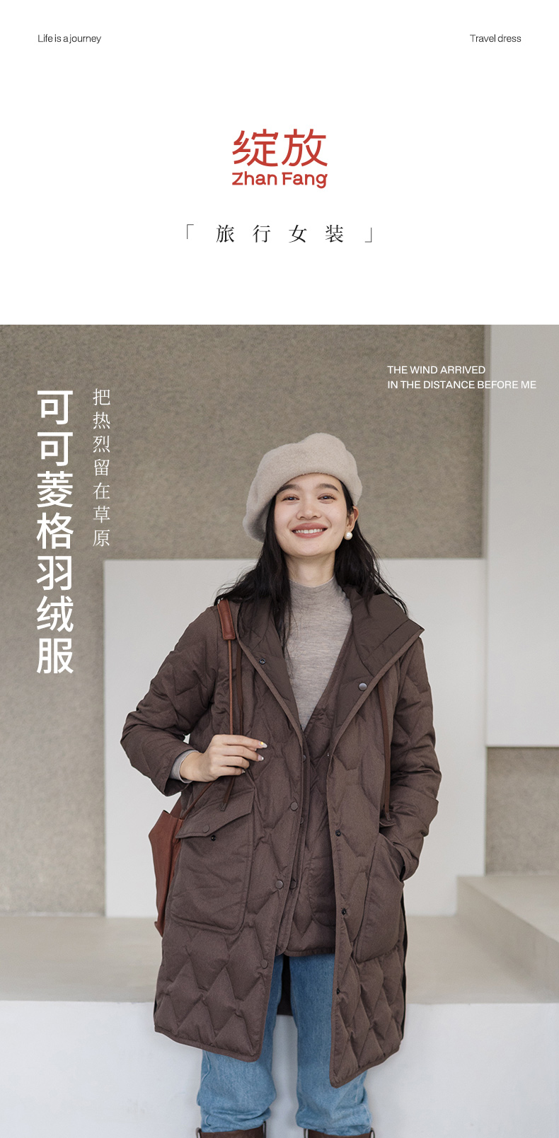 绽放643朵/可可菱格羽绒服·90白鹅绒斜纹连帽中长款羽绒马甲女