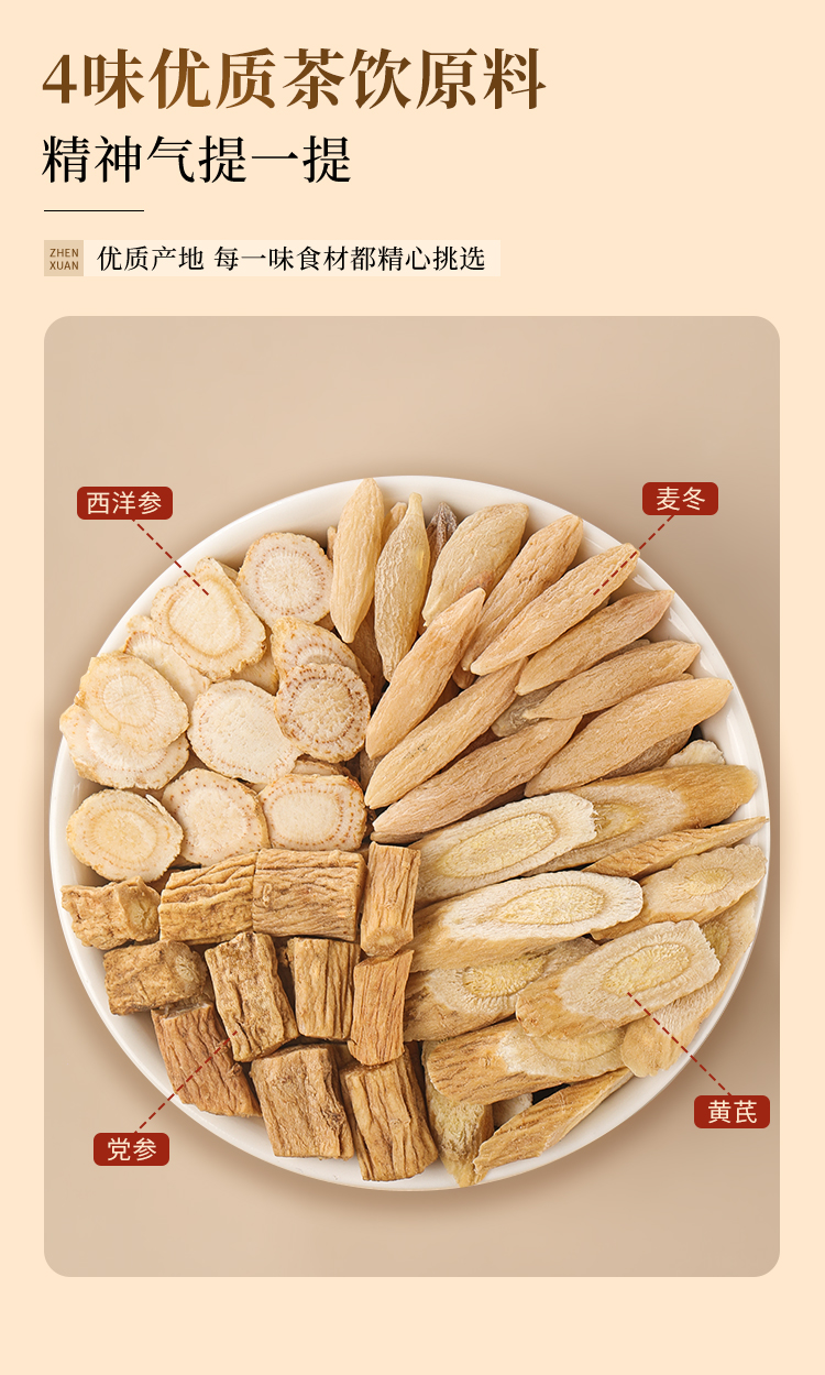 福东海 元气四宝茶160g 西洋参+麦冬+黄芪+党参组合 西洋参片茶元四宝汤养生煲汤炖汤食材滋气补材料泡水