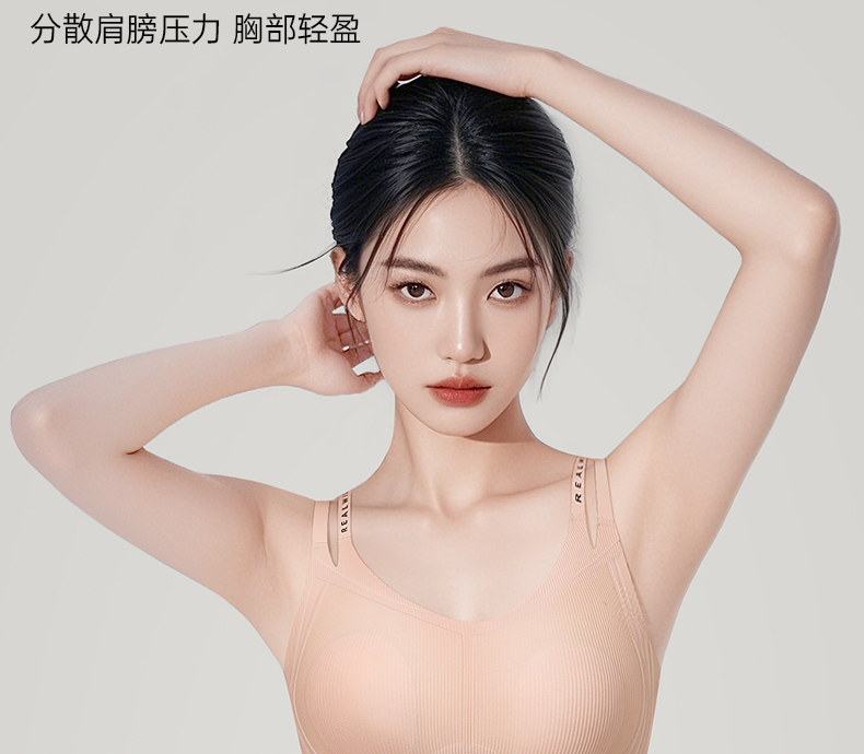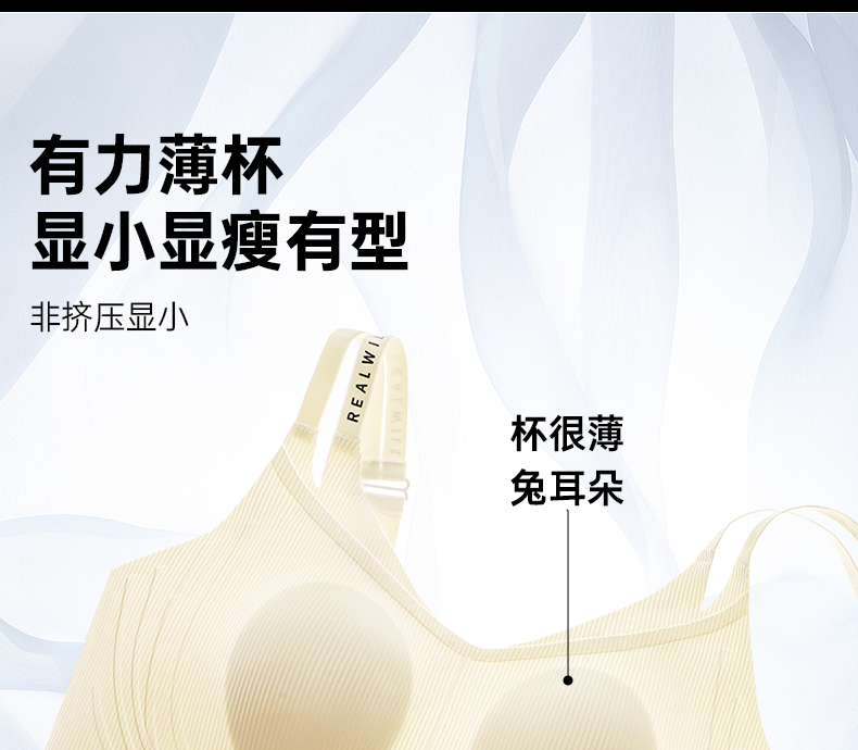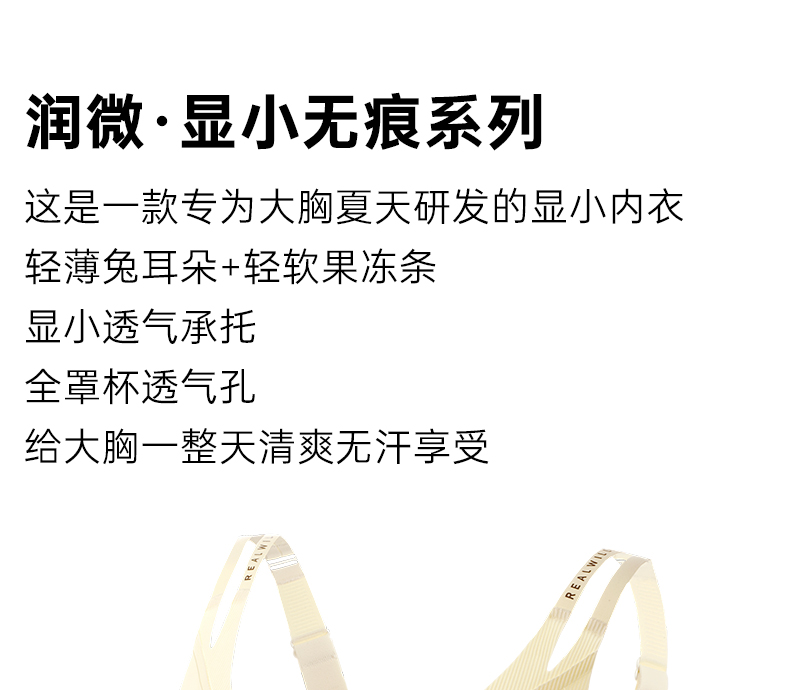 D1-【B-E】润微胸大显小内衣女显瘦大码无痕细肩带收副乳调整型凉感文胸薄款 氧气夏沫