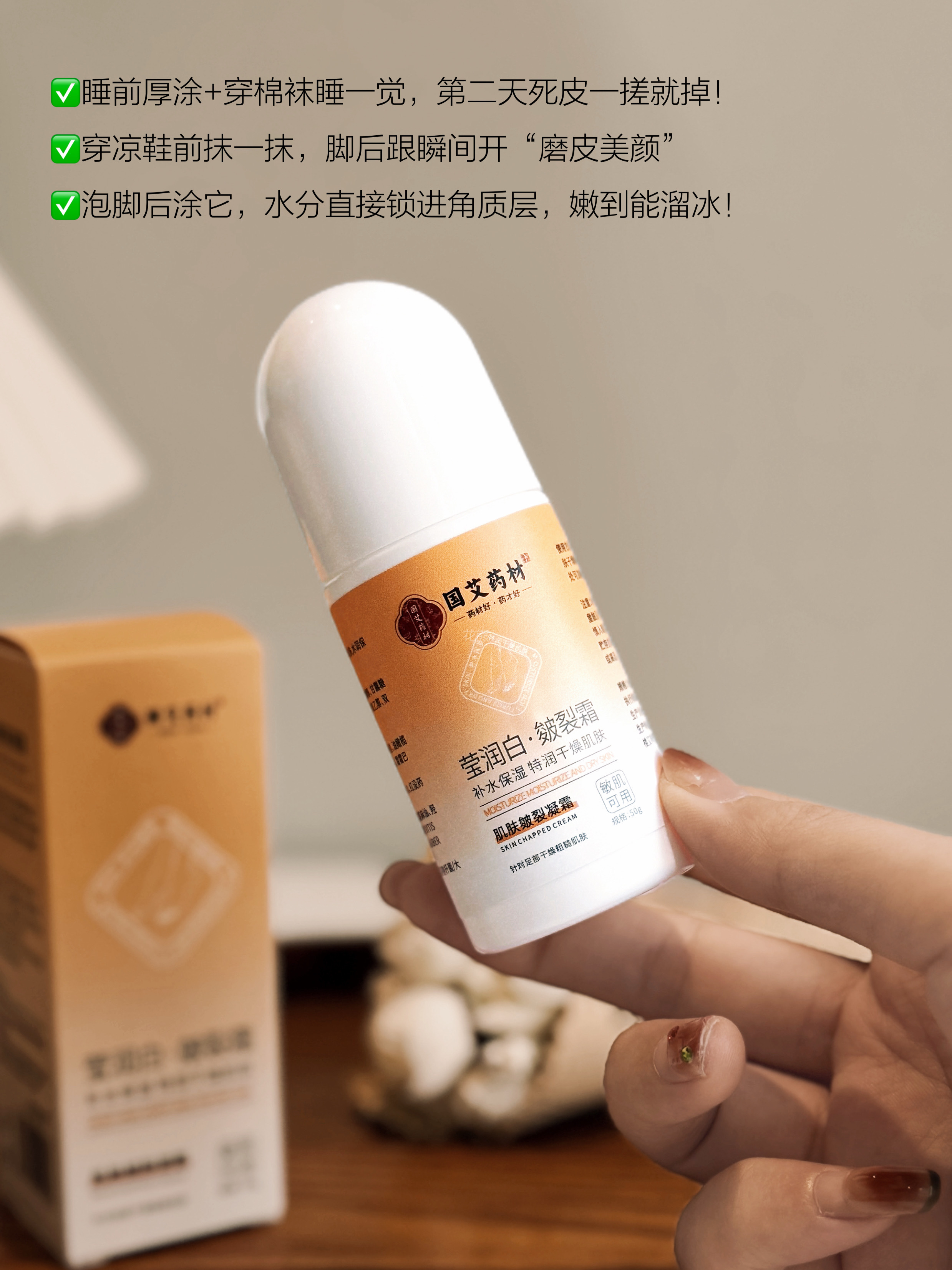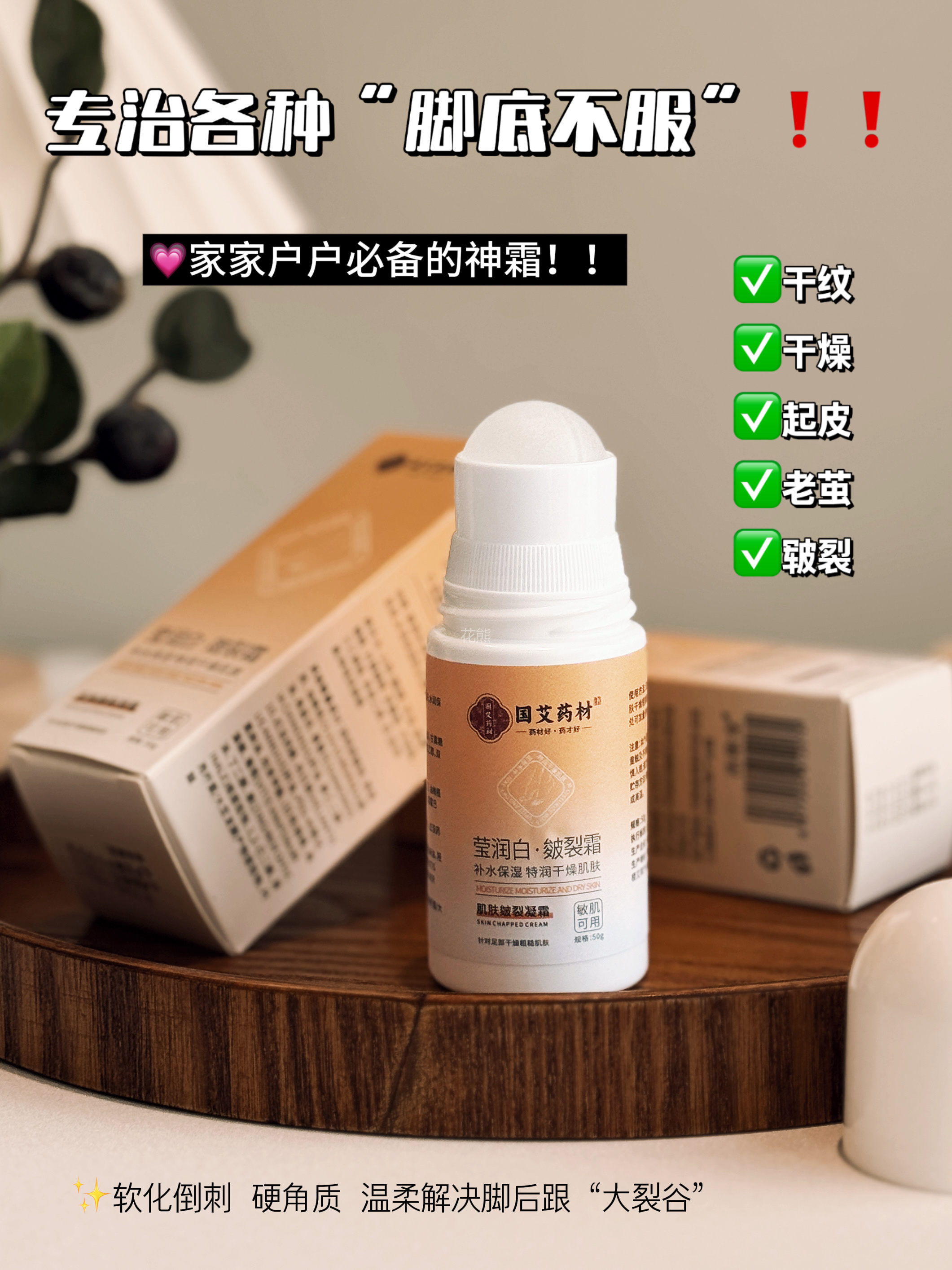 胖东来撤柜清仓【国艾药材肌肤皴裂凝霜】脚后跟“大裂谷"的来,三重王炸补水成分十多重天然植物V吸水-锁水-封包,深层保湿V人性化滚珠设计,滚一滚解放双手!