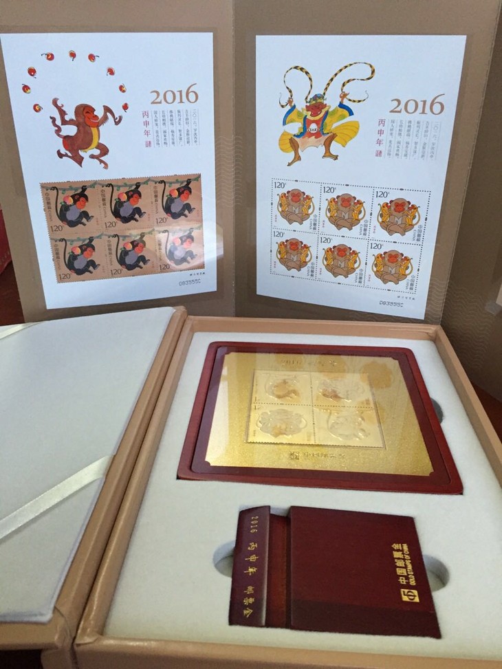 1、2016丙申年生肖邮票金,是中国邮政发行生肖邮票金第一轮生肖邮票金第一款,(2016-2027年,每12年为一轮)由中国首套80年猴票设计家黄永玉老师再次出山设计。