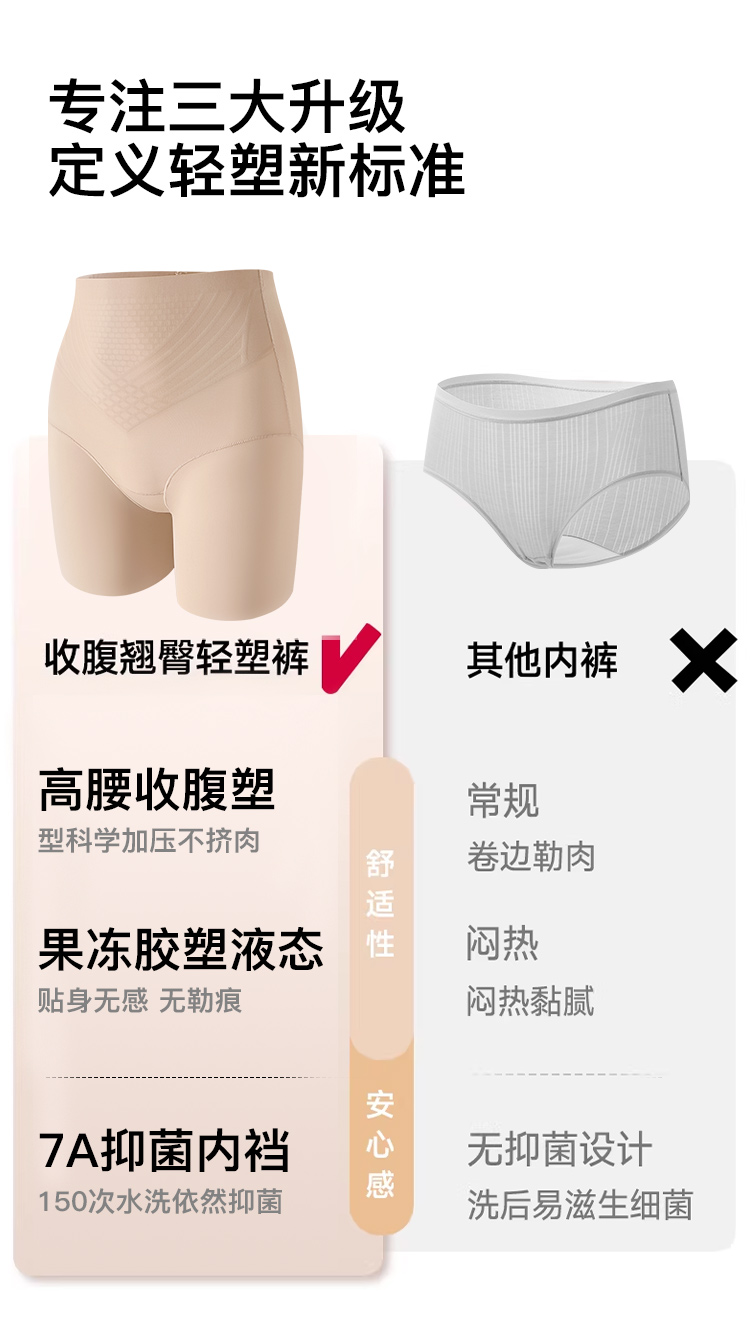 S1- 【含桑蚕丝】收腹裤收小肚子塑形塑身裤提臀裤免穿内裤不卷边显瘦 纤影依依