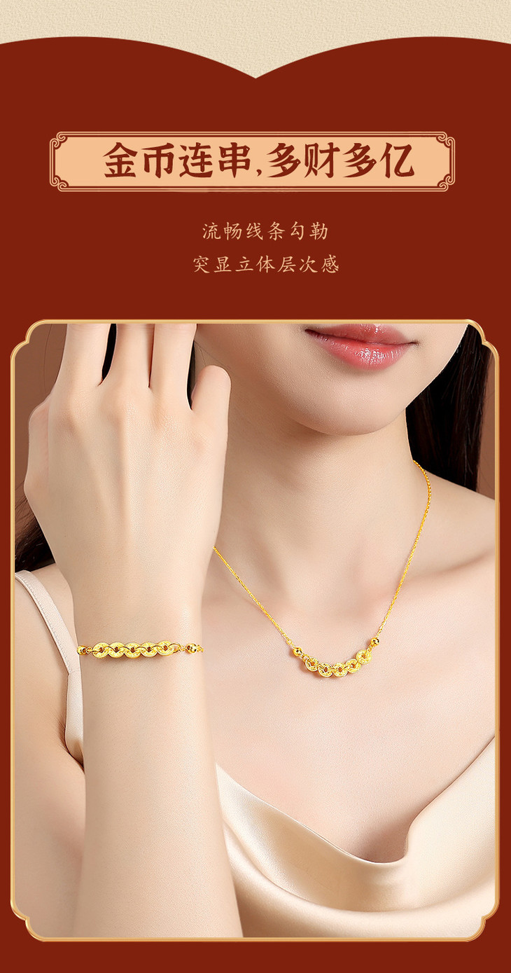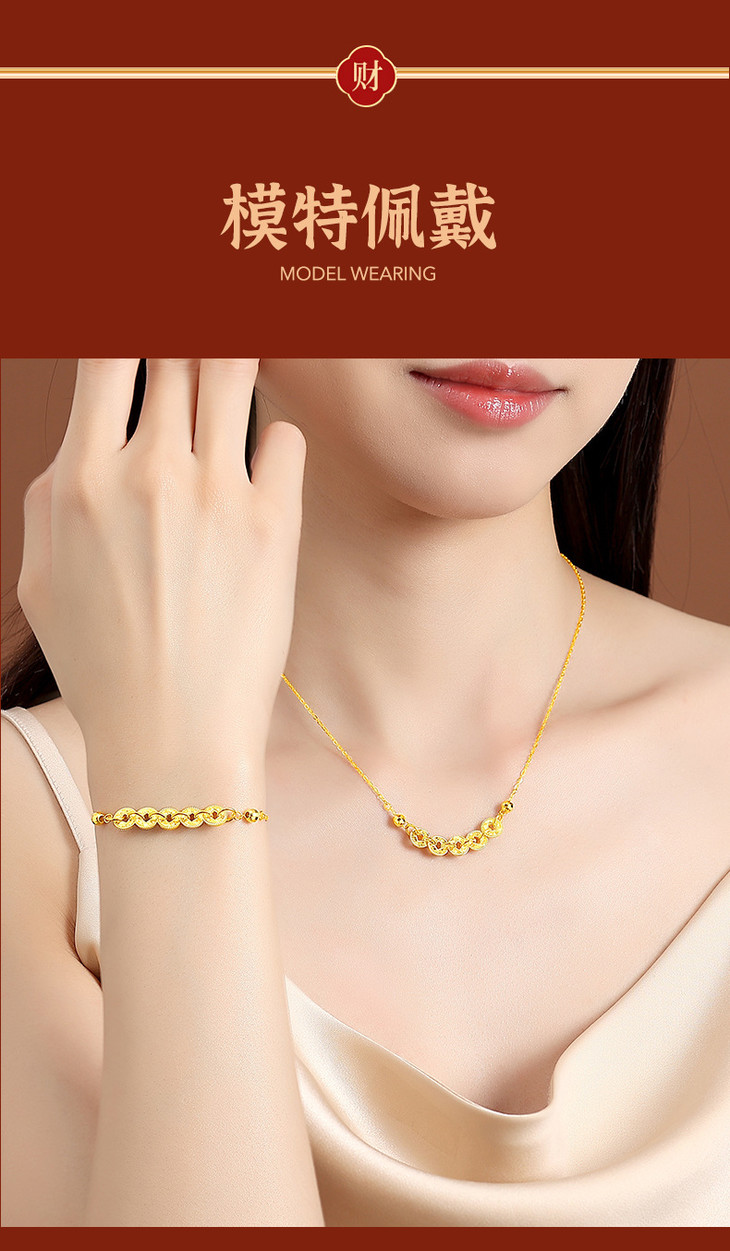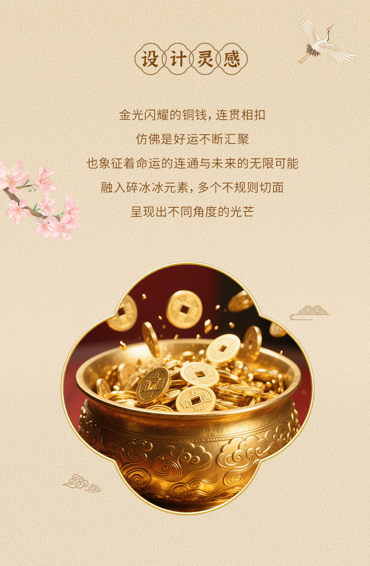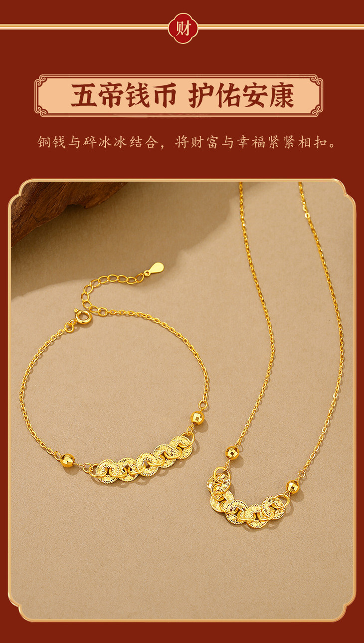 六鑫珠宝 碎碎冰五帝钱套装 s925银镀金