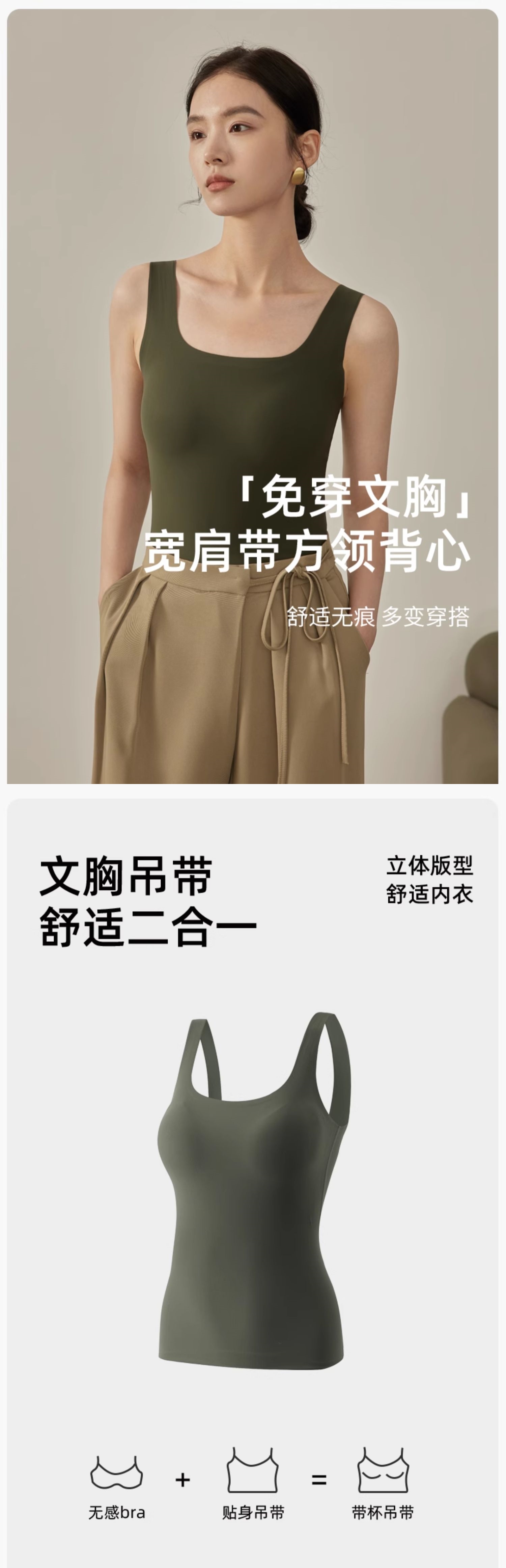 weyo宽文胸方领吊带无痕美背背心带胸垫打底内衣X23102、X25102
