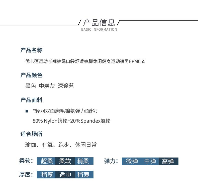 YOKALAND/优卡莲运动EPM055长裤抽绳口袋束脚休闲健身运动裤男