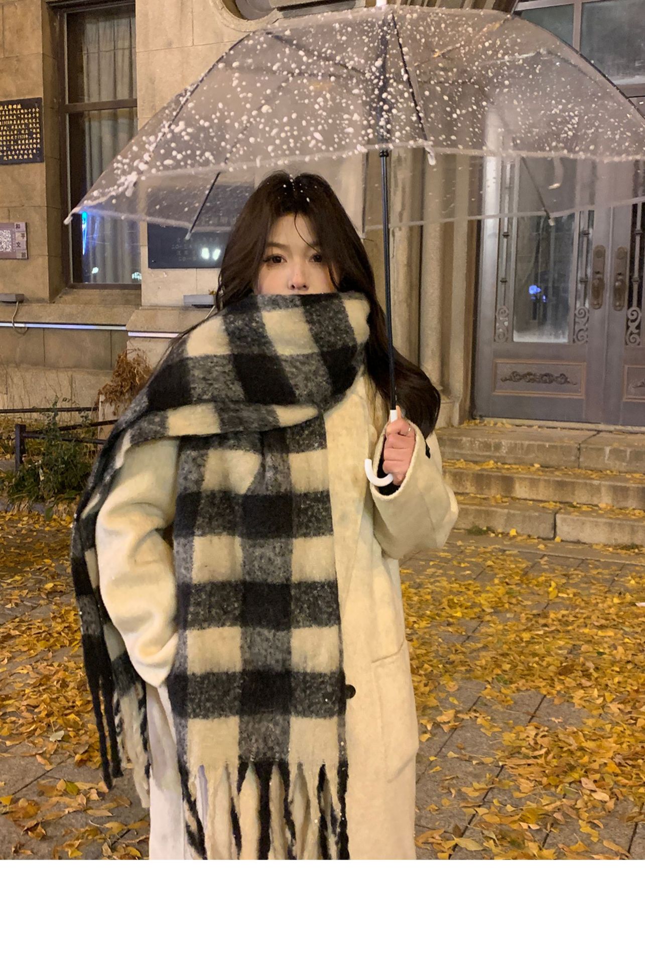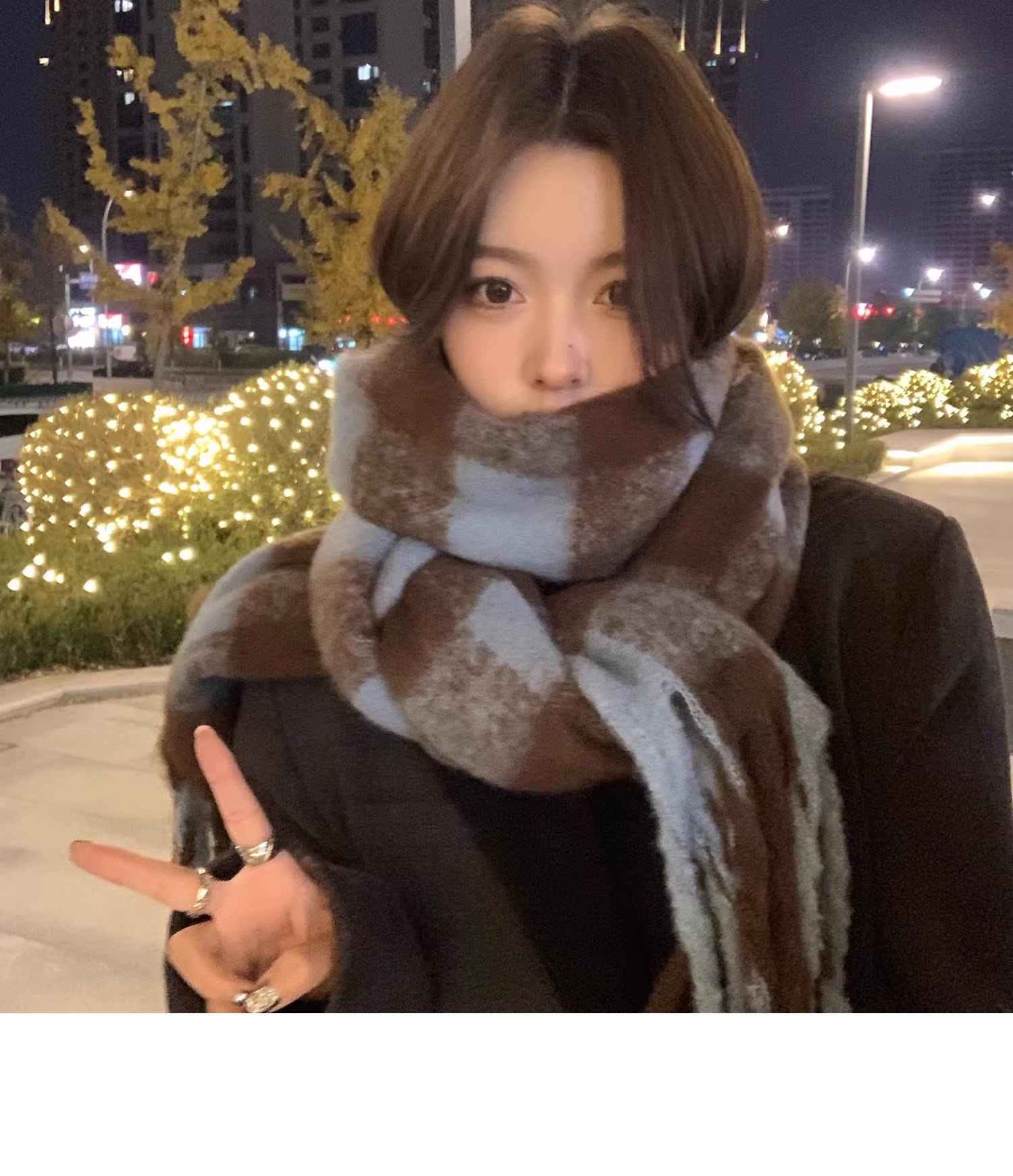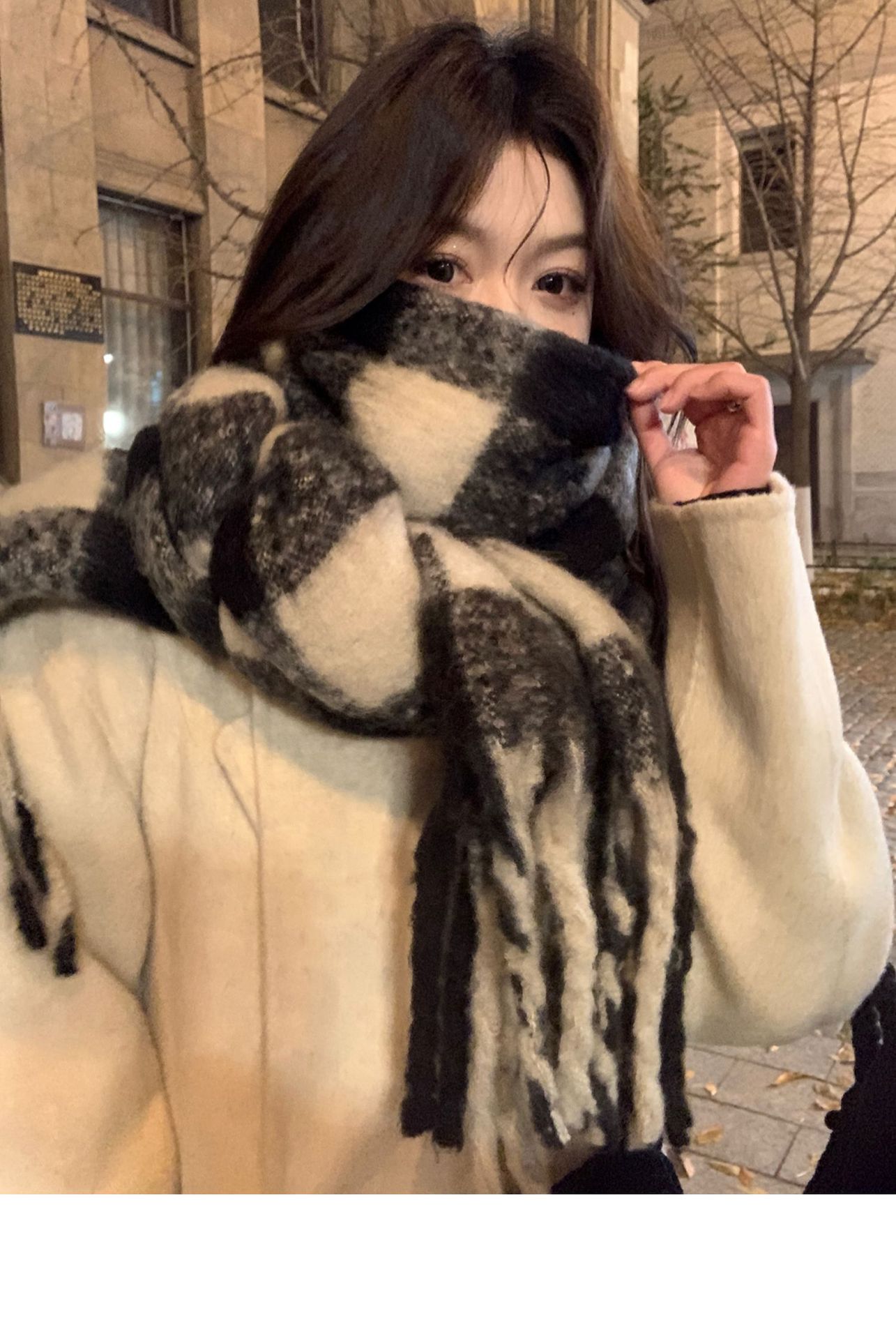 2025年秋冬韩版黑白格纹马海毛围巾复古保暖流苏围脖男女百搭批发