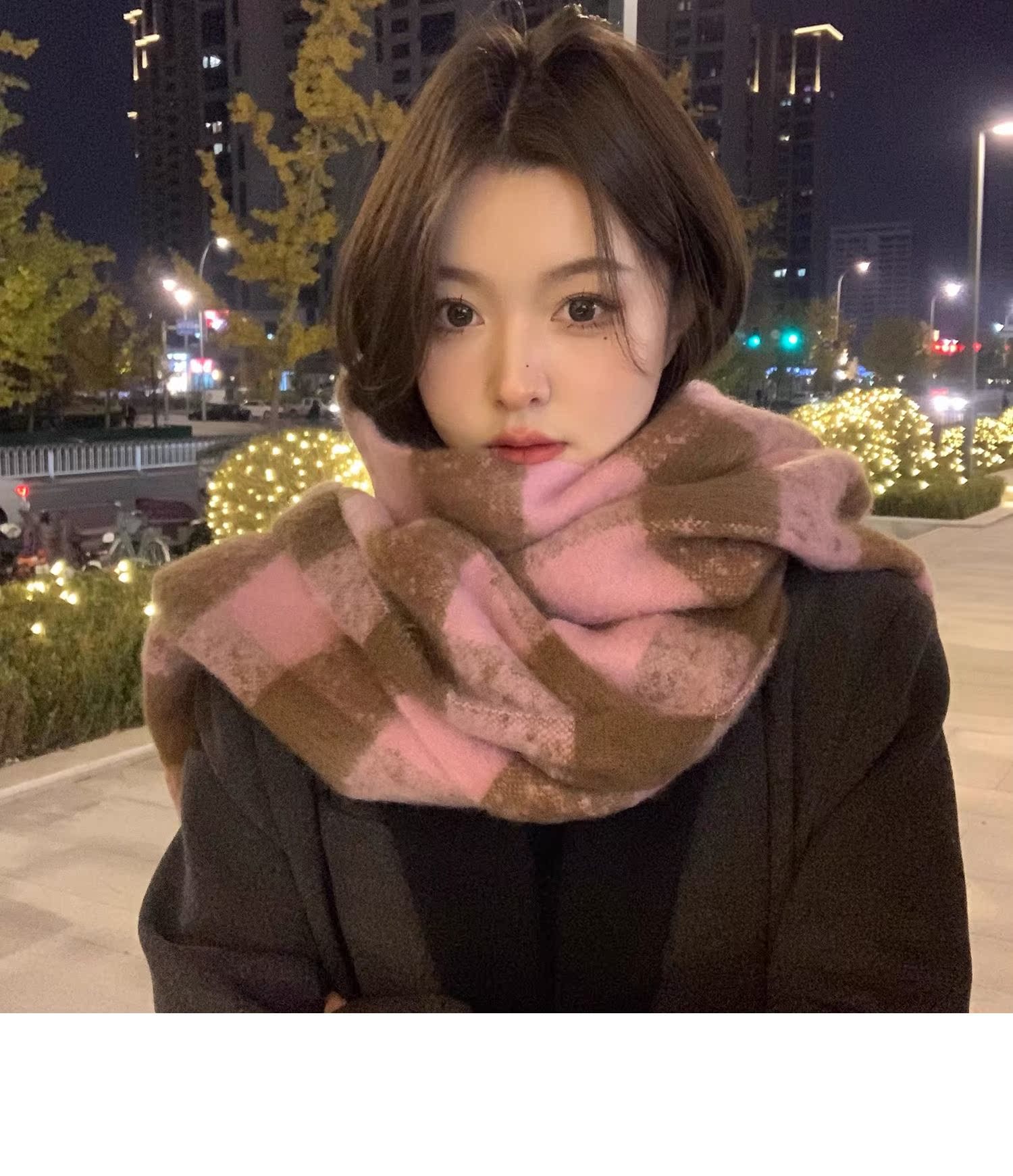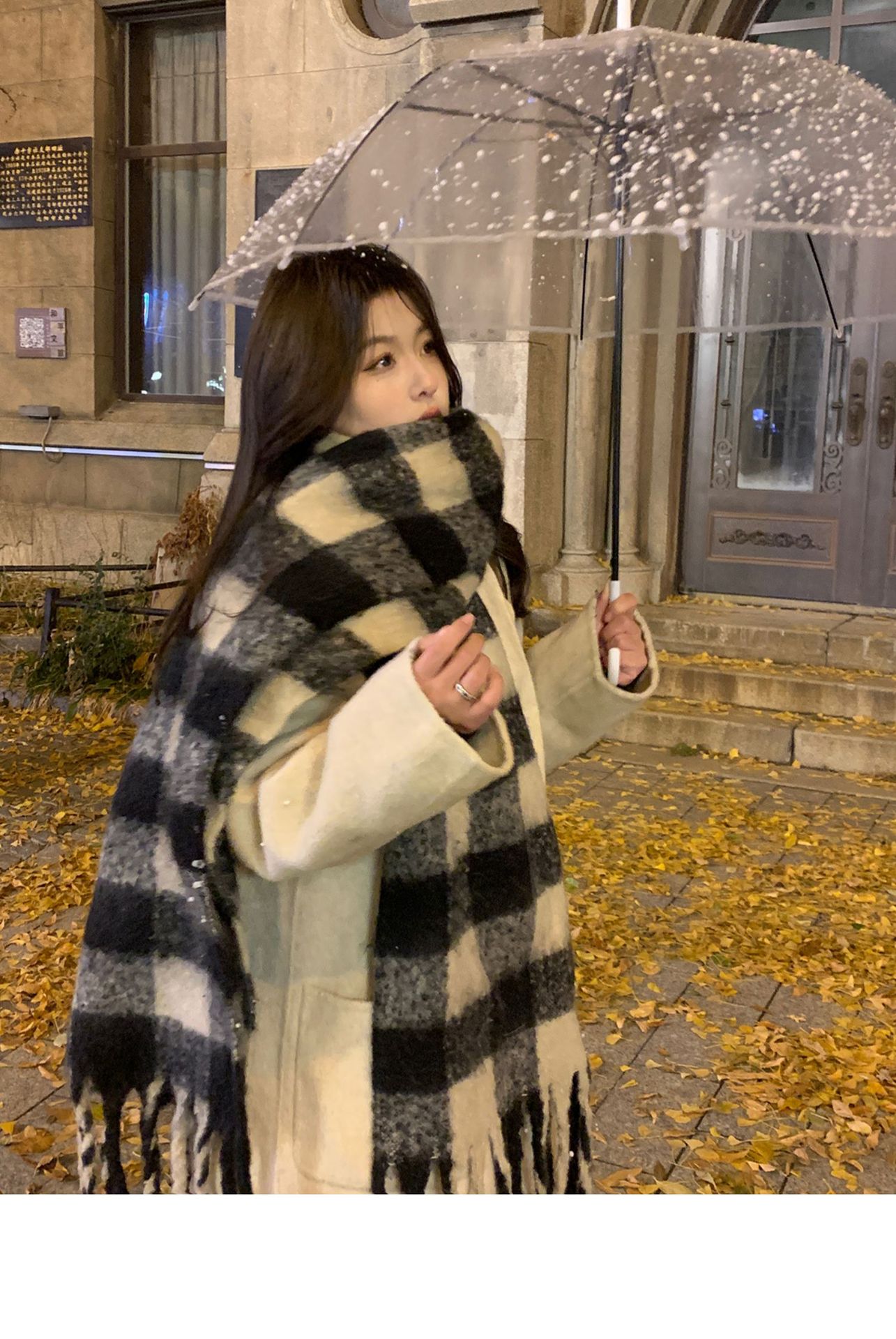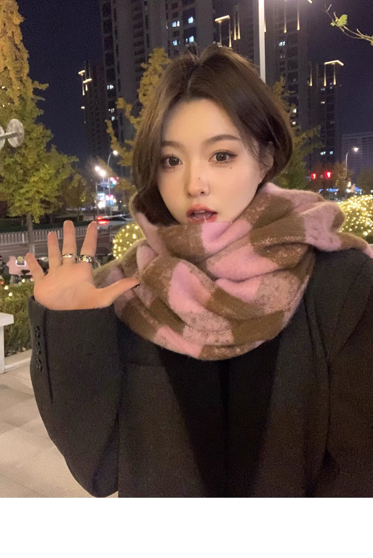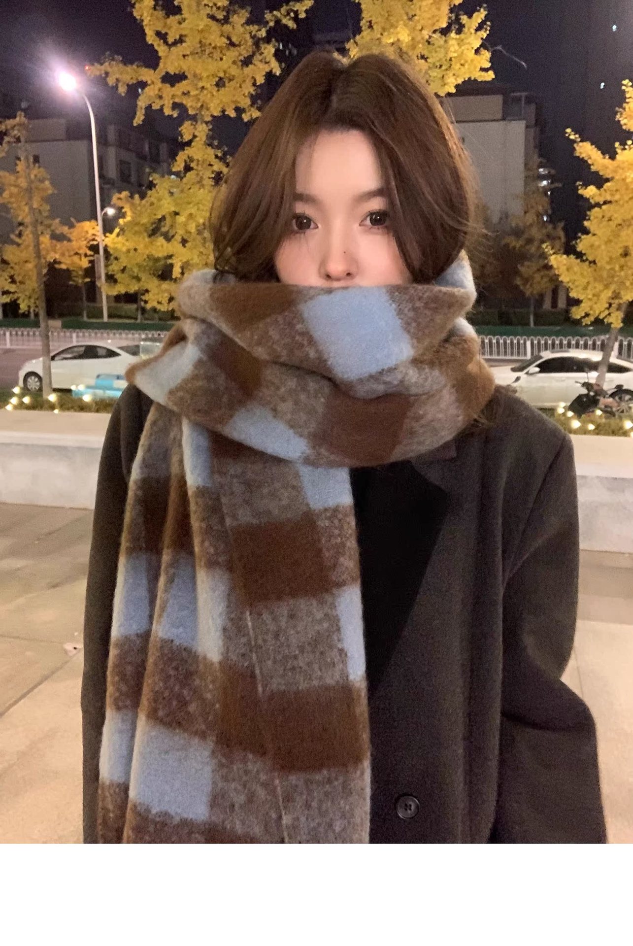 2025年秋冬韩版黑白格纹马海毛围巾复古保暖流苏围脖男女百搭批发