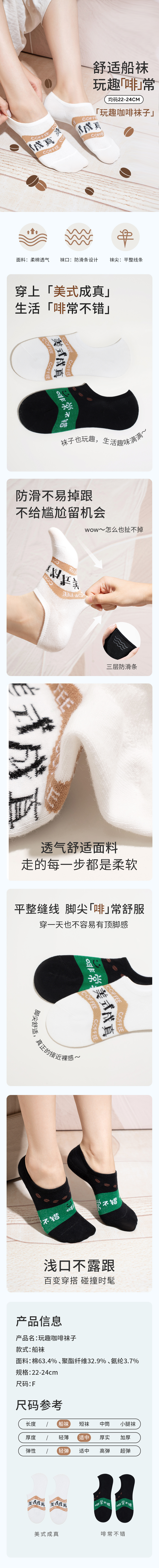 奶糖派袜子玩趣咖啡袜浅口隐形船袜女夏季款防滑不易掉跟女袜