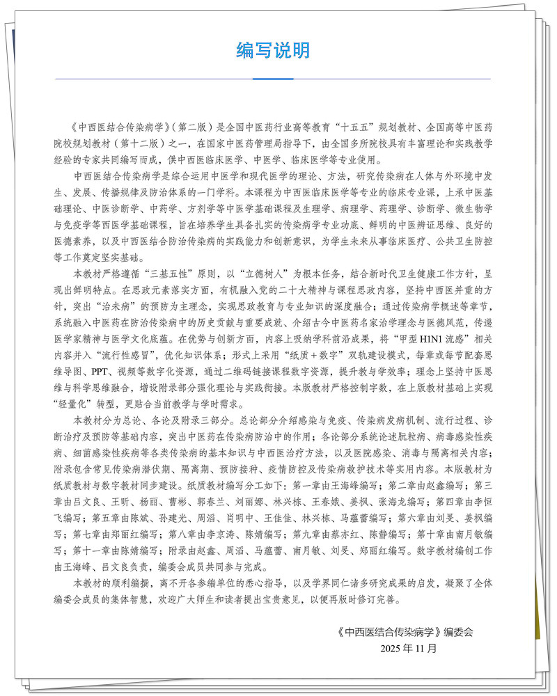 中西医结合传染病学 王海峰 吕文良 主编(第二版)全国中医药行业高等教育十五五第十二版规划教材 中国中医药出版社
