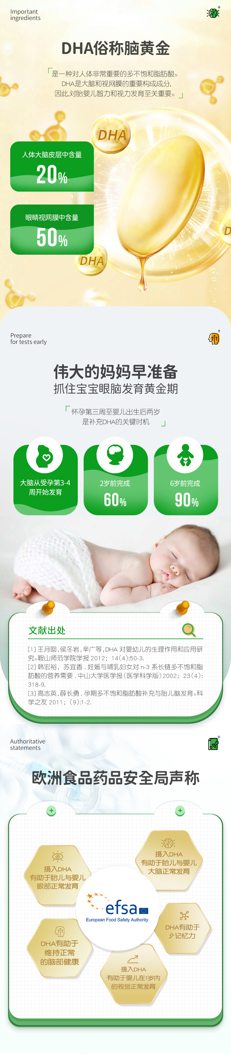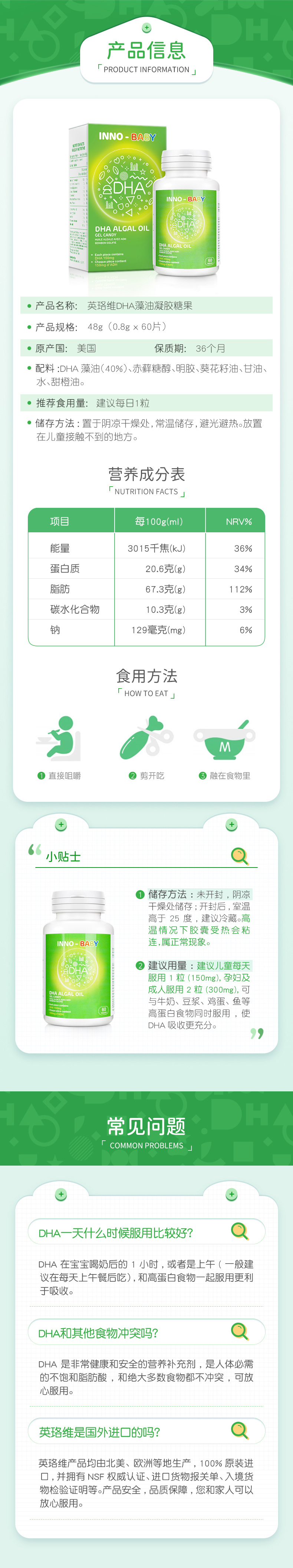 英珞维 dha藻油婴儿婴幼儿海藻油儿童营养品非鱼油宝宝记忆力 60粒