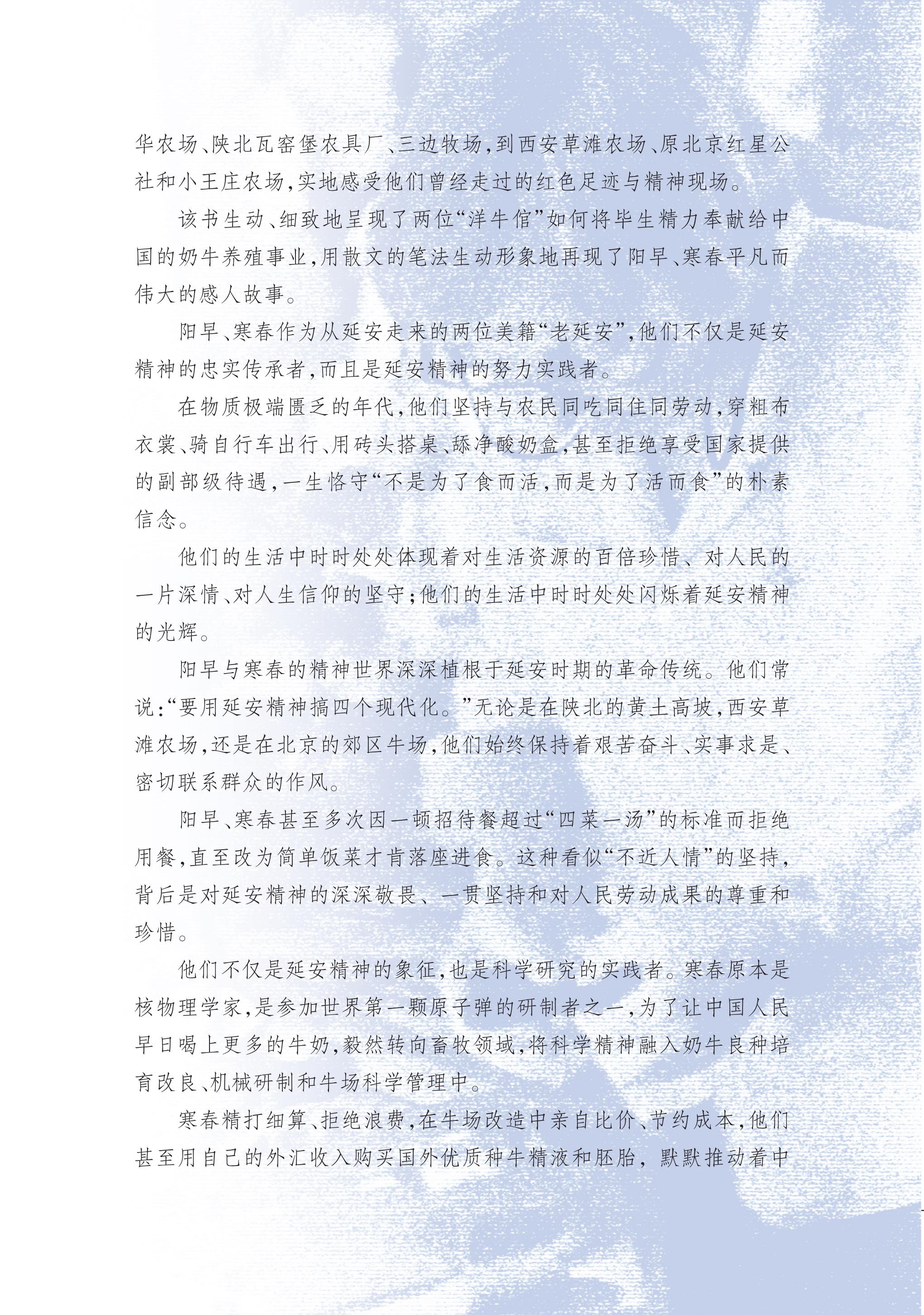 这本书不仅讲述两个人的故事,更刻写了一种精神——那是自力更生、艰苦奋斗的延安精神,是扎根土地、服务人民的实干精神,也是跨越国界、求真求实的科学精神。在快速变化、价值多元的今天,这样的故事依然有着直抵人心的力量。