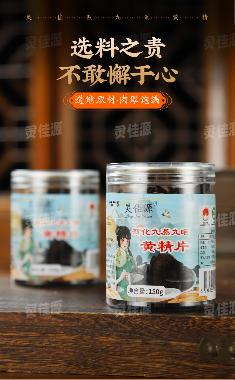 新化多花黄精九蒸九晒即食片正品九制黄精150克瓶装健康养生滋补
