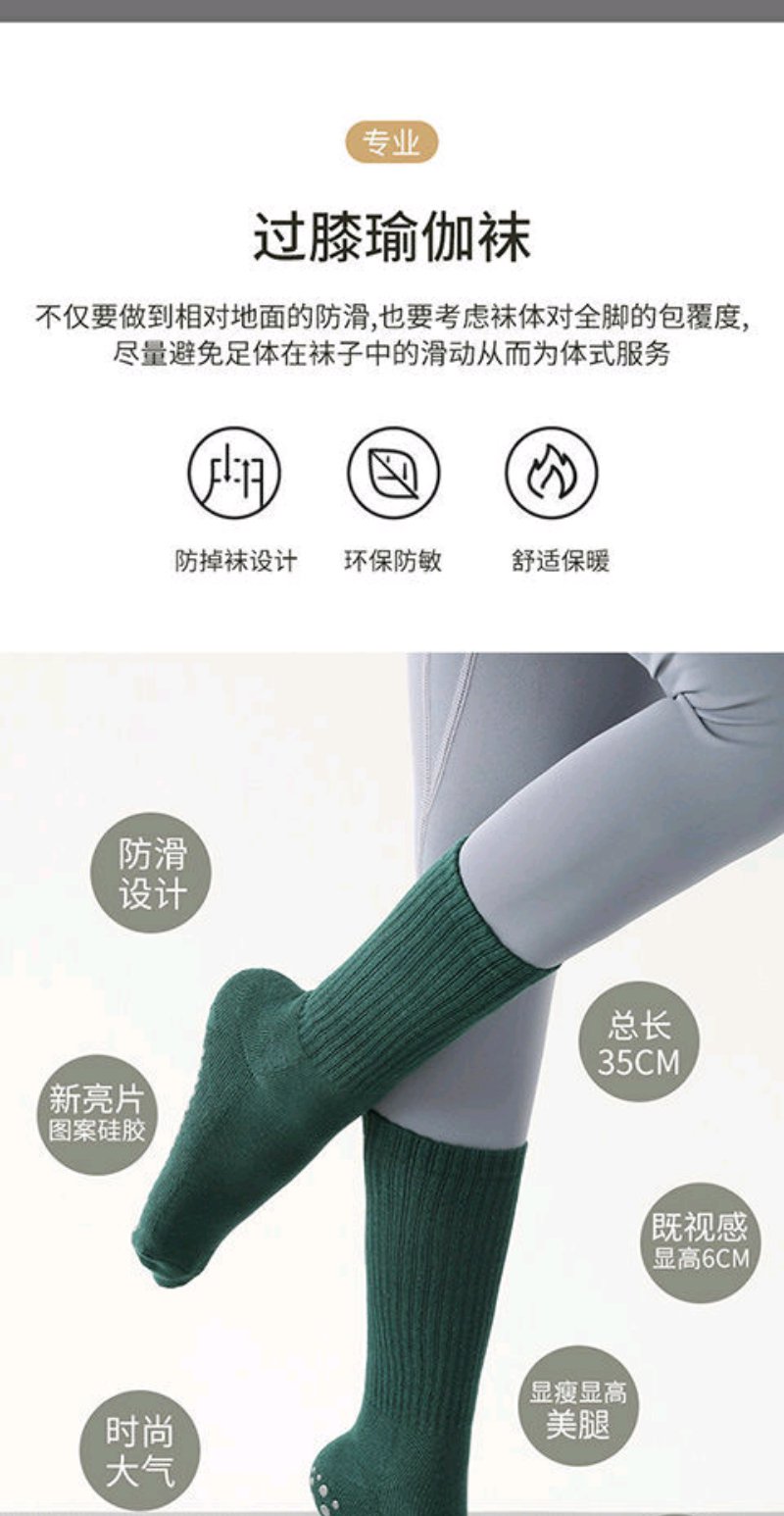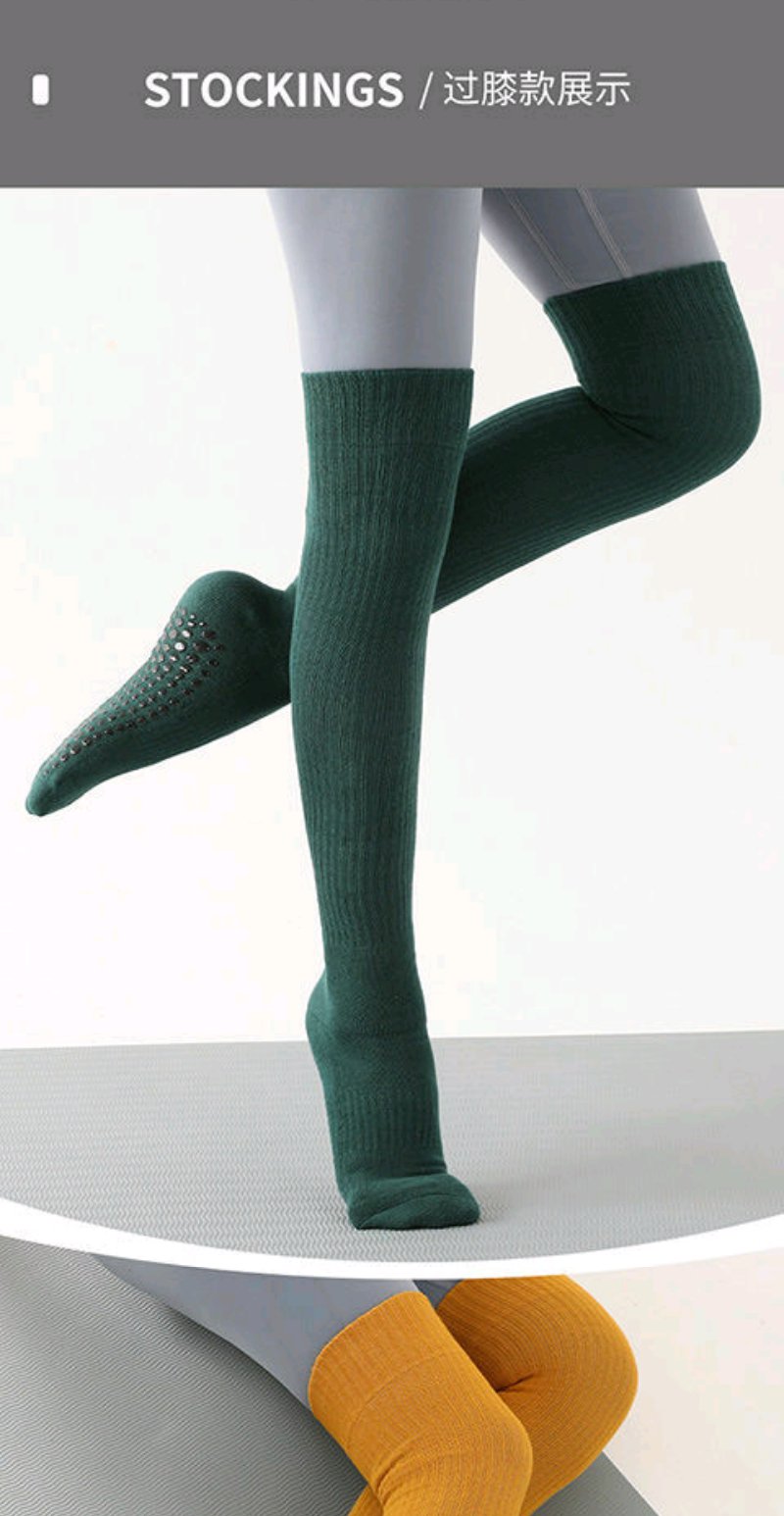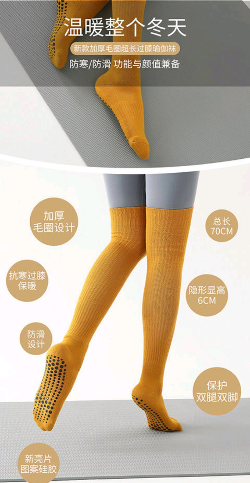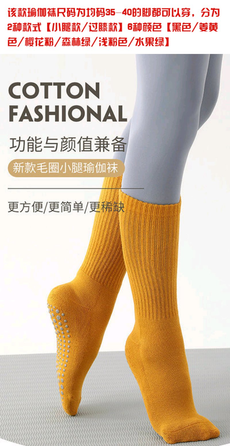 中筒瑜伽袜专业防滑秋冬款加厚过膝舞蹈袜普拉提耐磨室内地板袜
