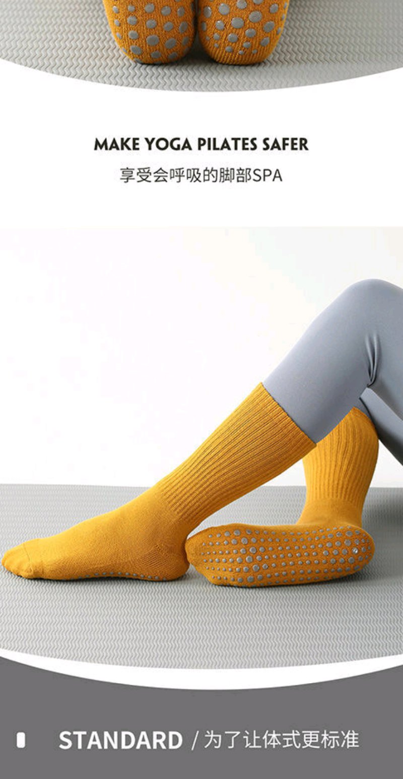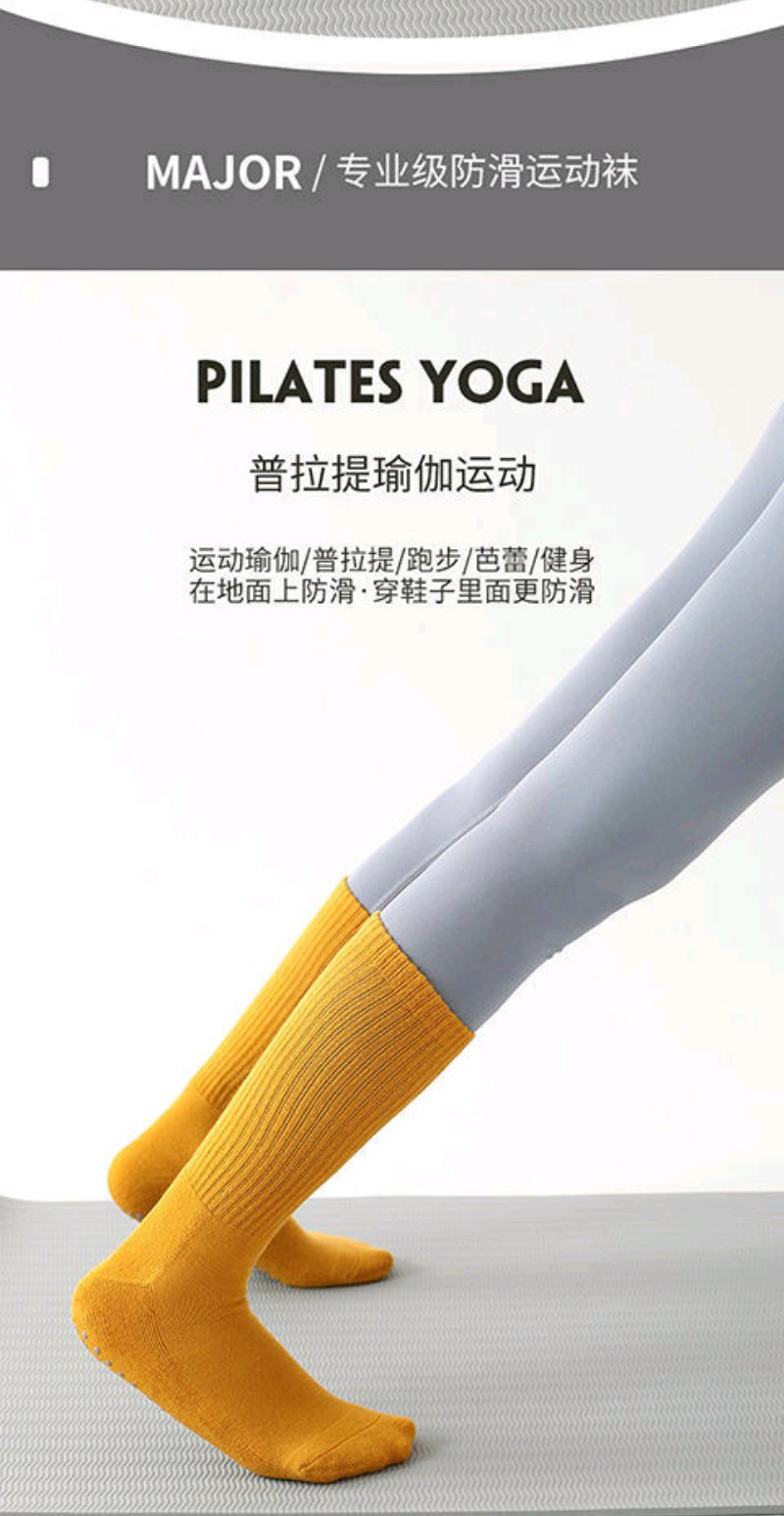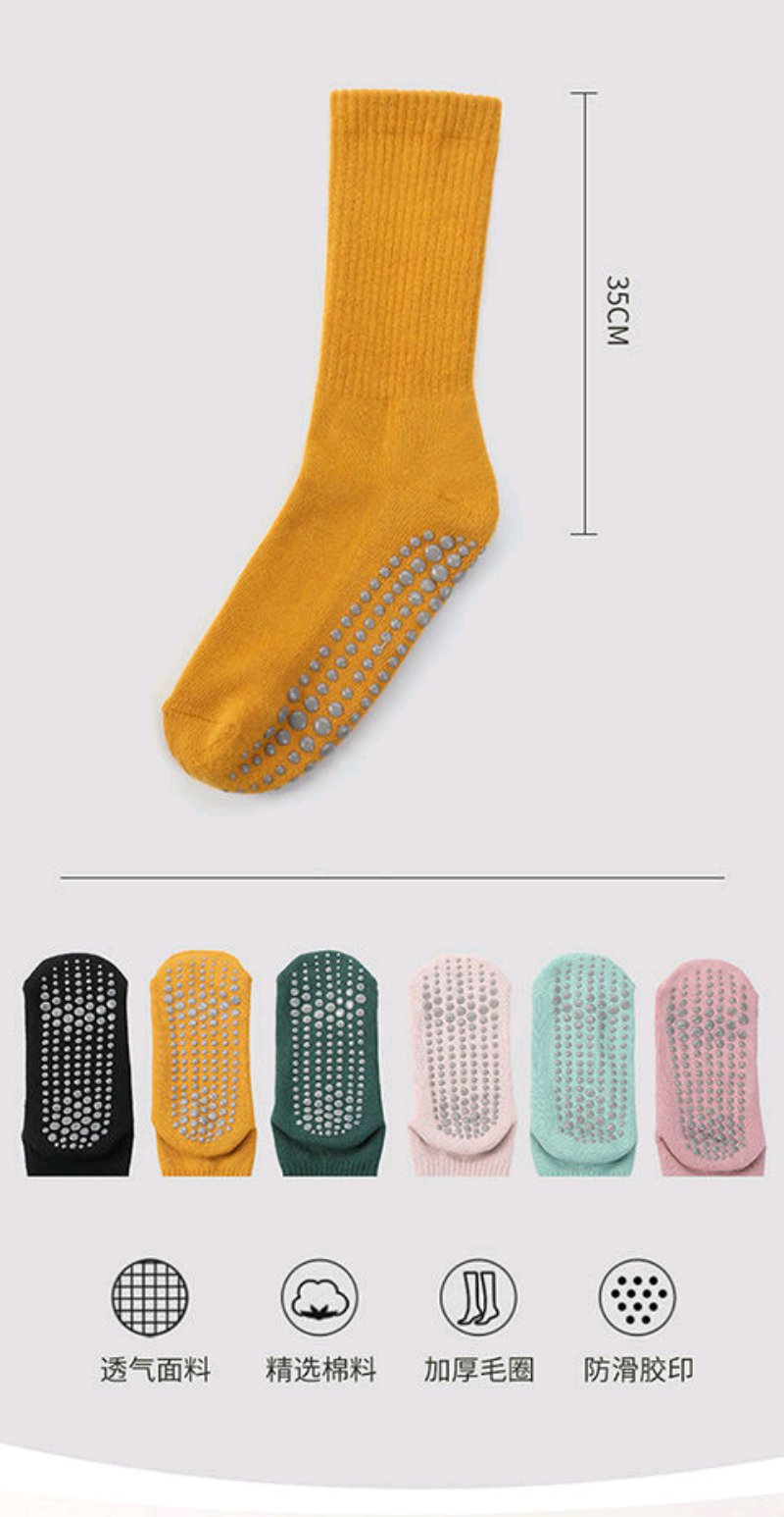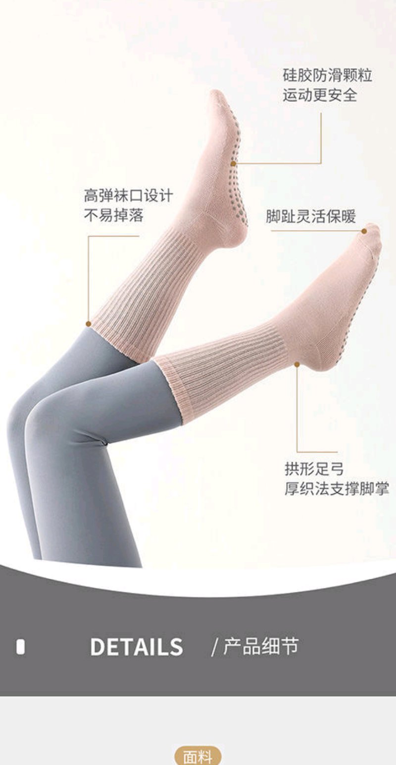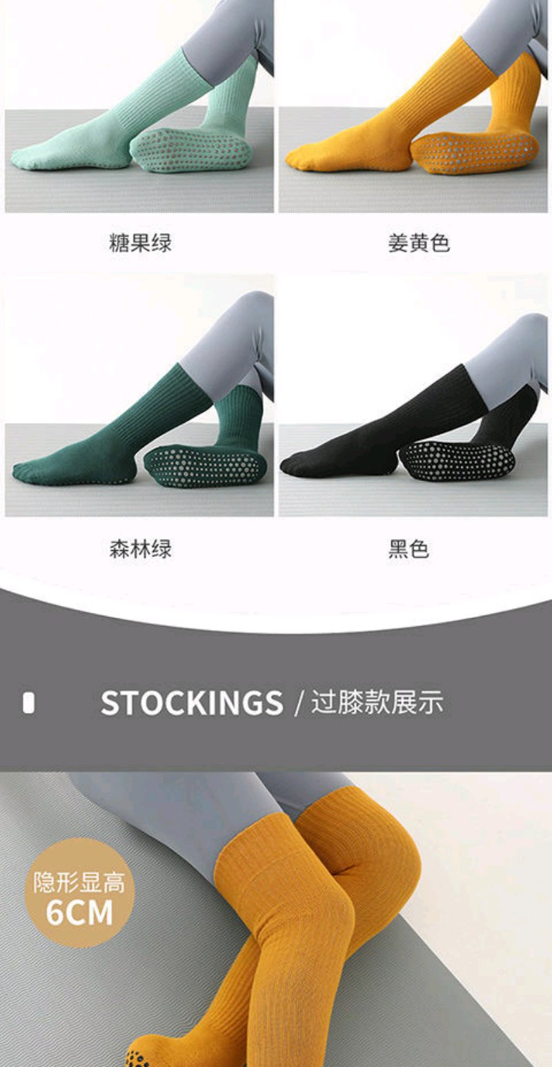 中筒瑜伽袜专业防滑秋冬款加厚过膝舞蹈袜普拉提耐磨室内地板袜