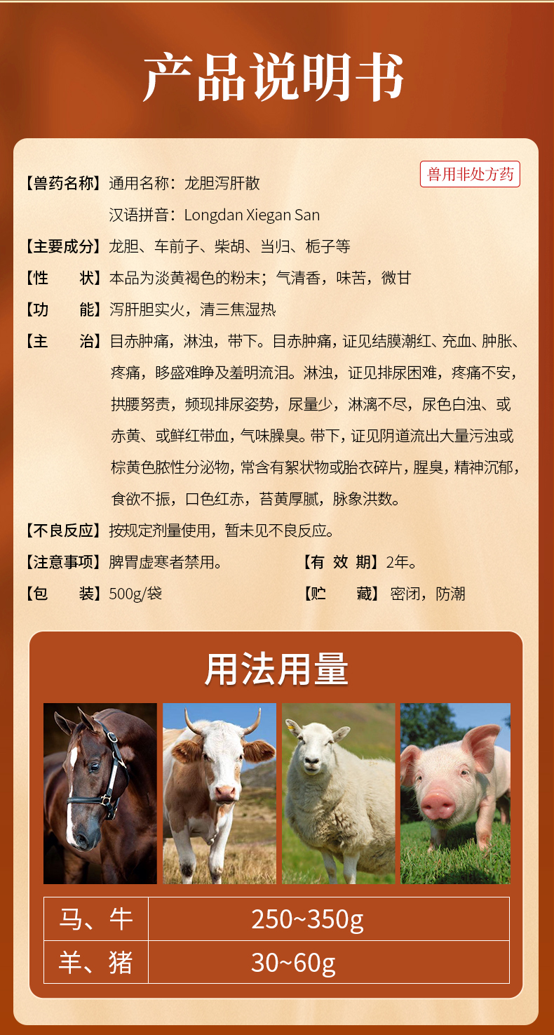 华畜兽药 龙胆泻肝散500g 清热泻火 利水消肿 保肝护肾排毒 禽畜通用