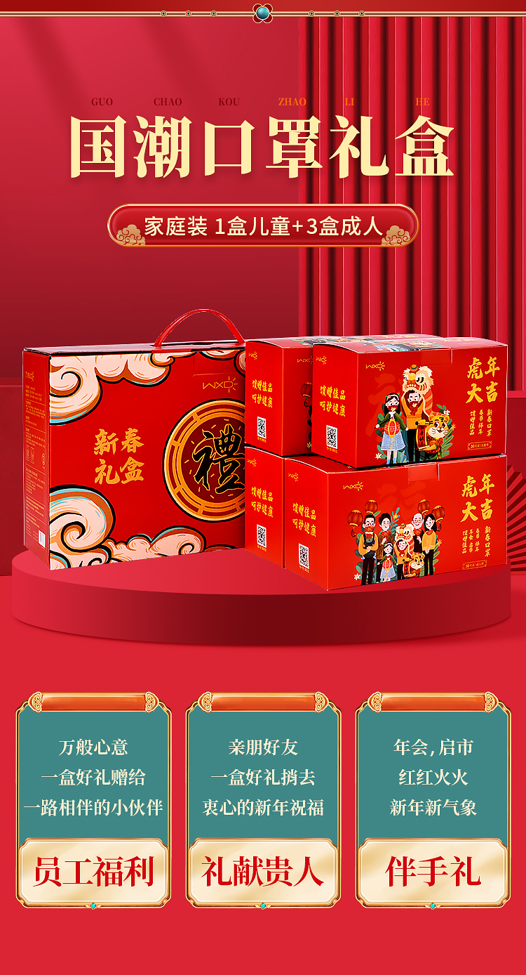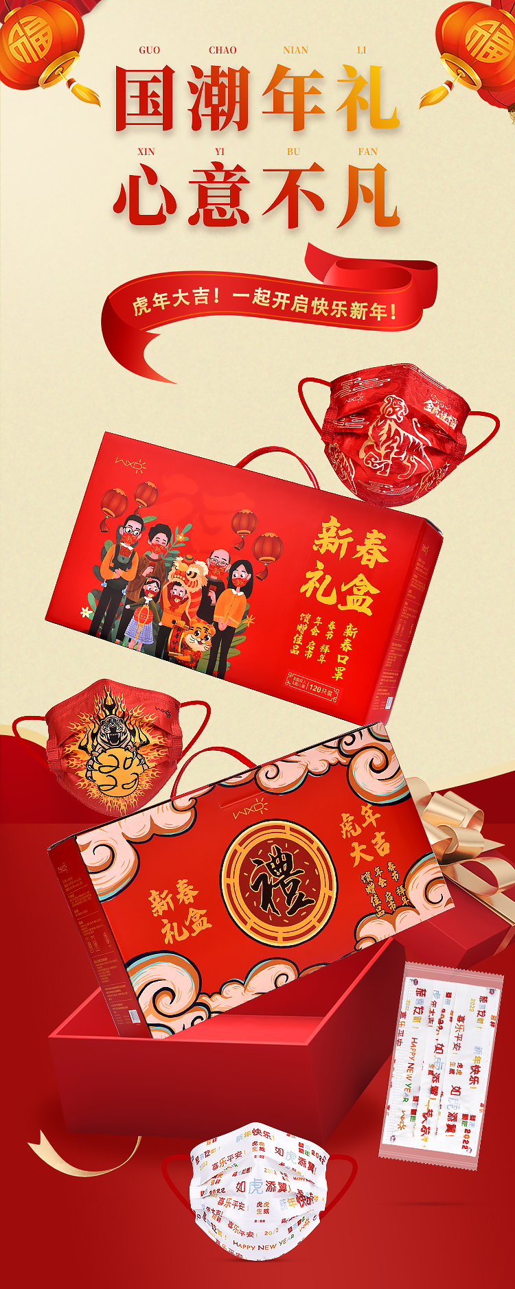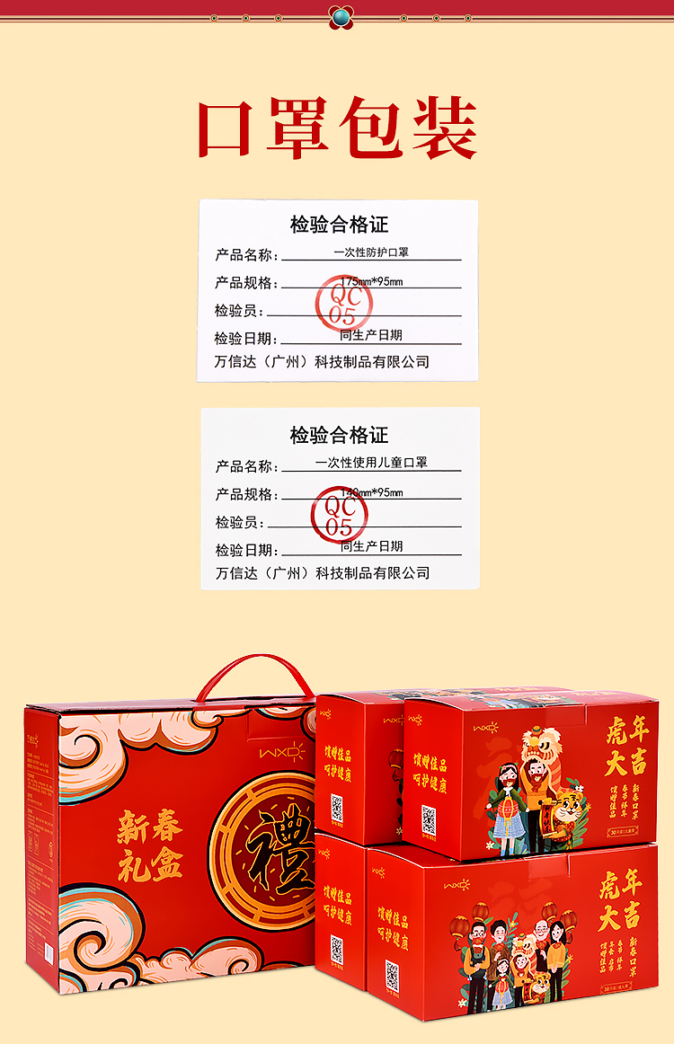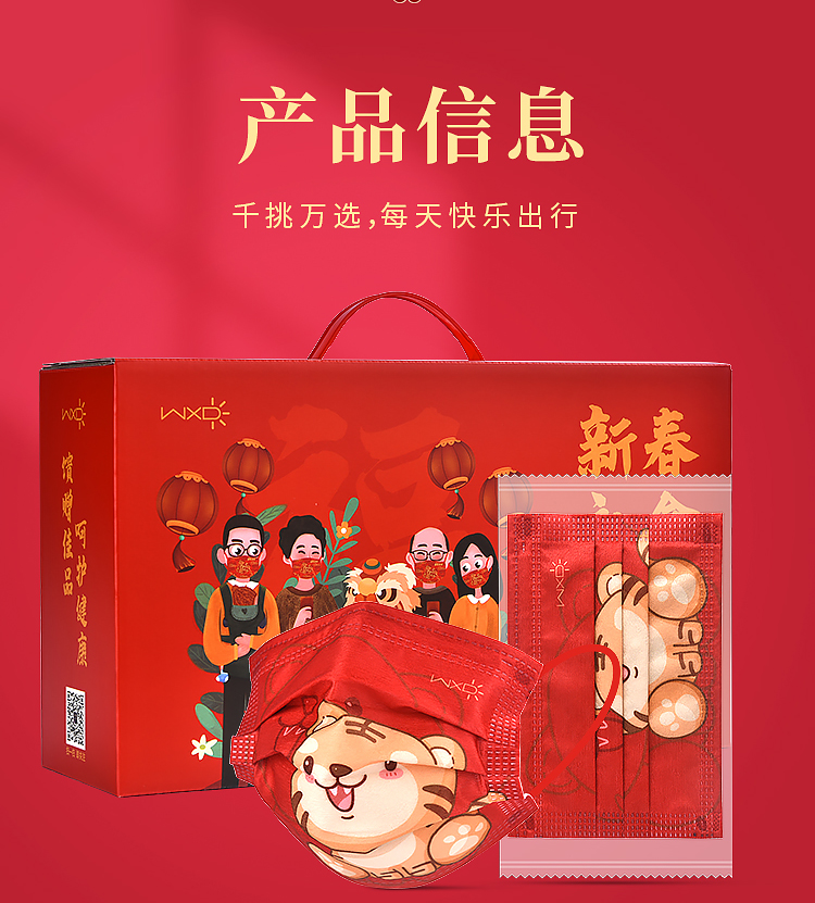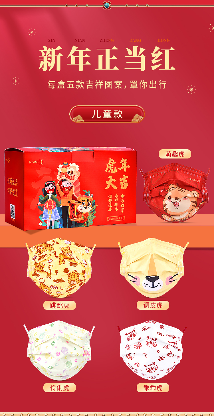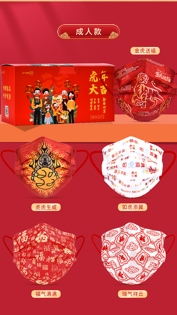 万信达·福气 虎年防护口罩,兼具防护与颜值,喜庆放心过新年 成人款儿童款