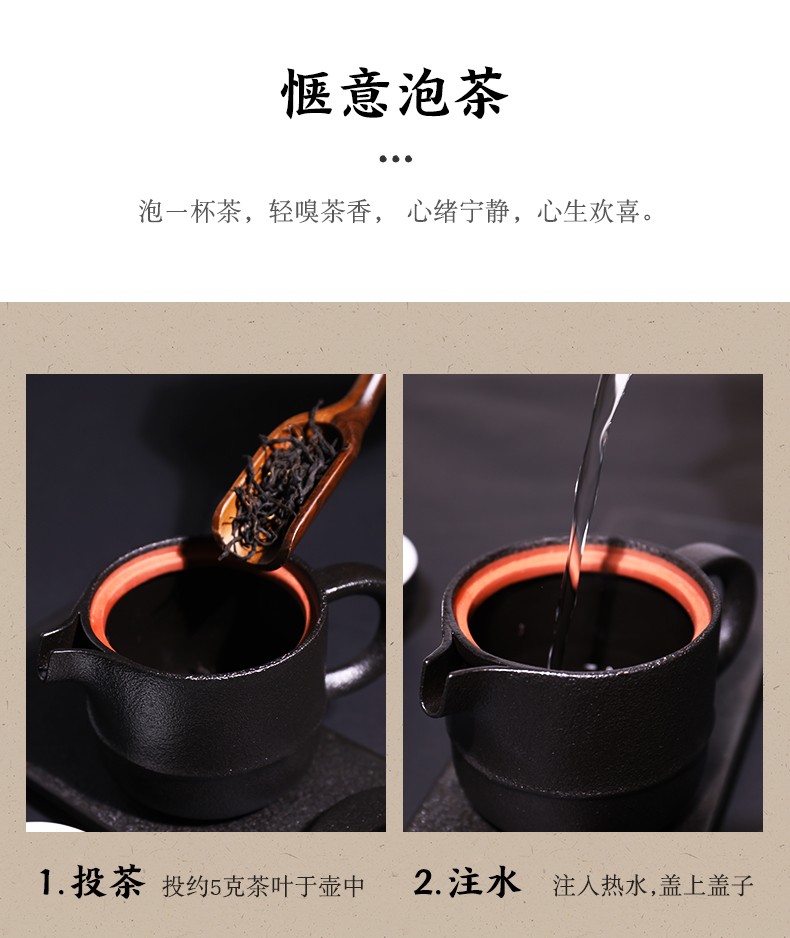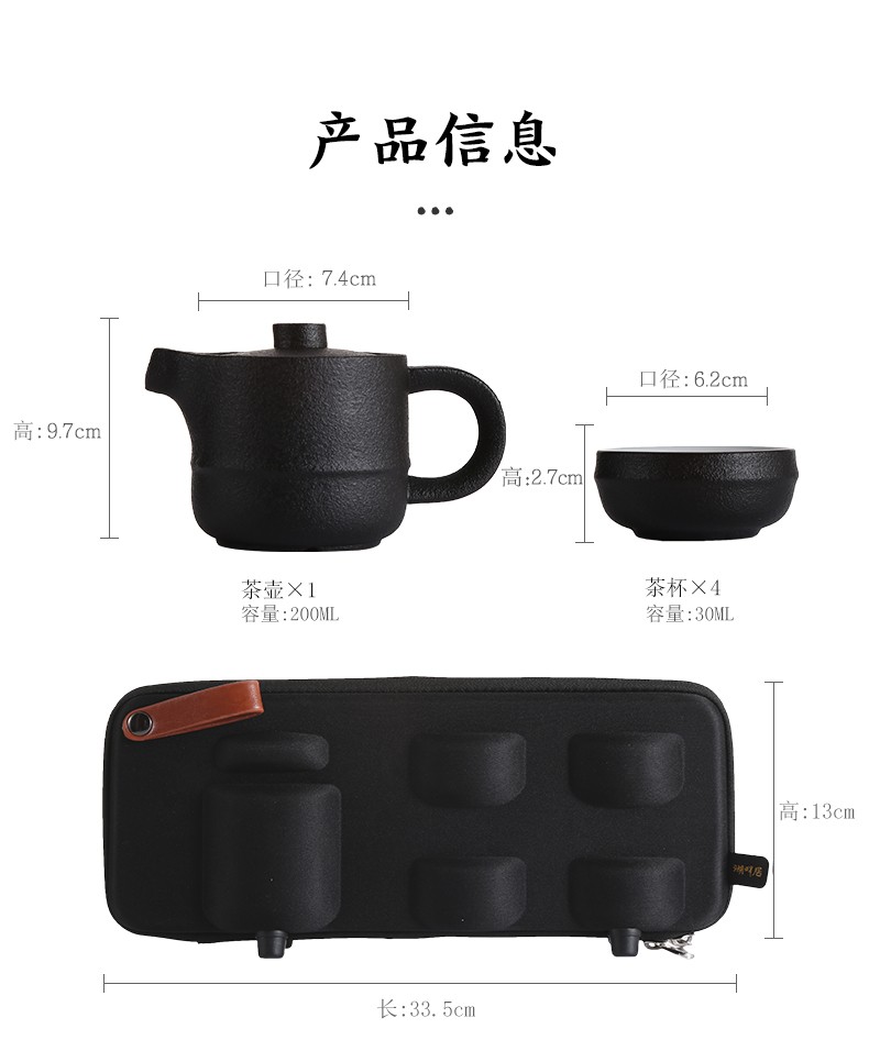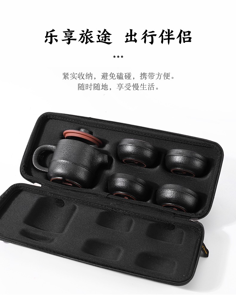 墨釉茶具套装功夫茶具一壶四杯旅行茶具·湖畔居 商品图4
