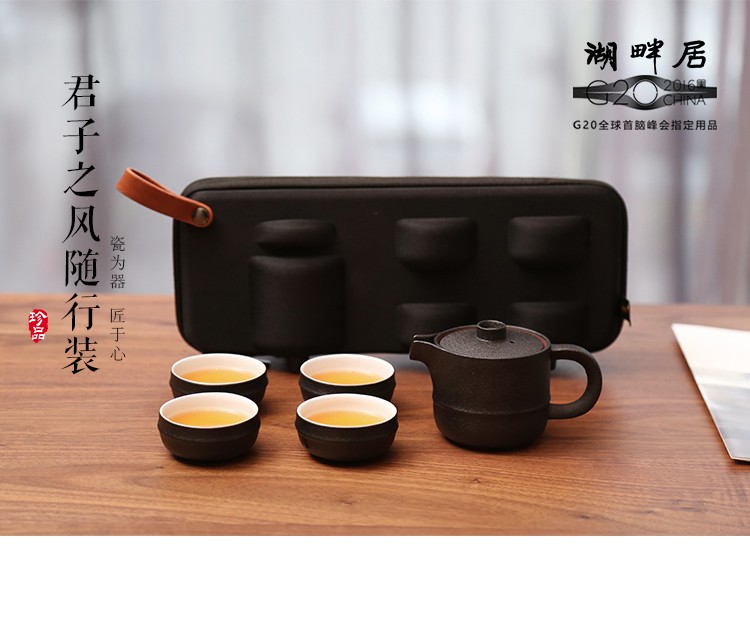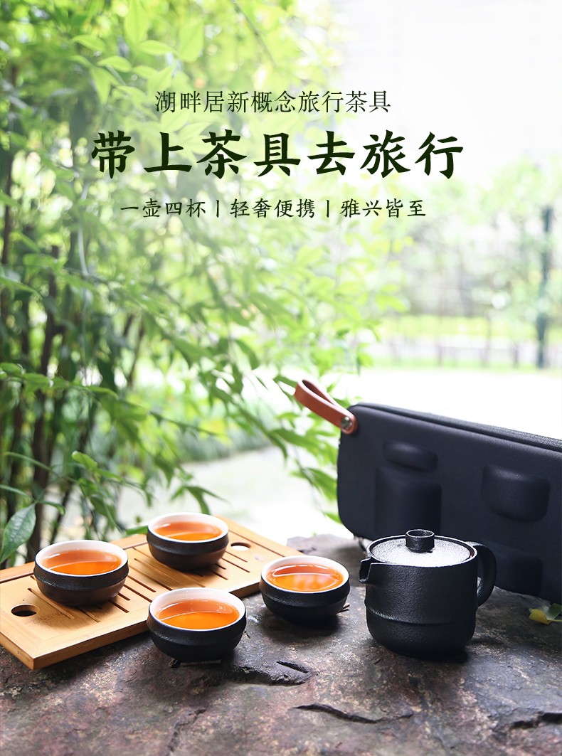 墨釉茶具套装功夫茶具一壶四杯旅行茶具·湖畔居