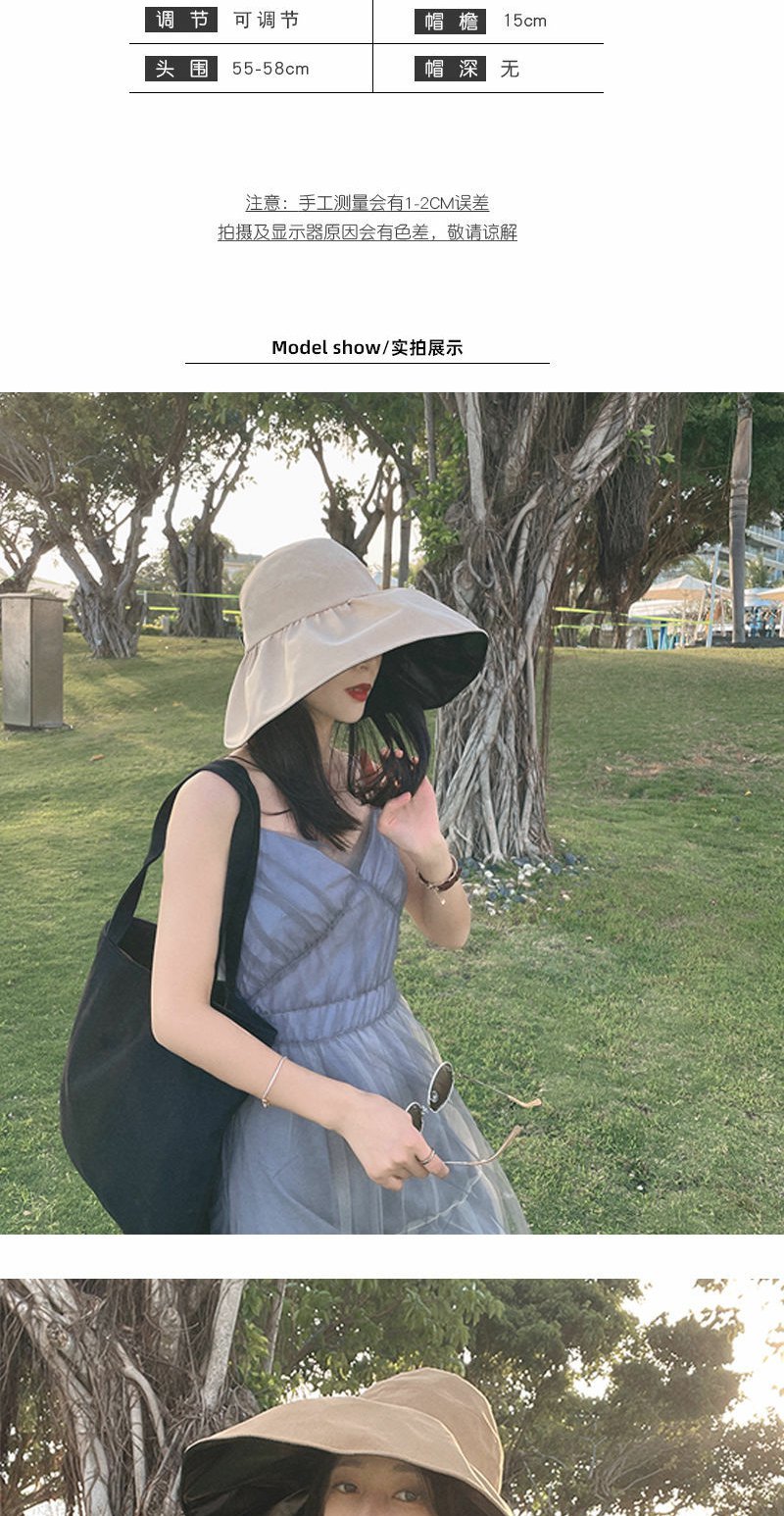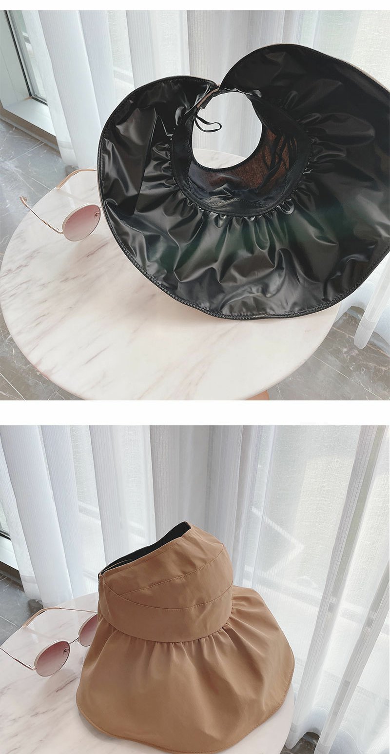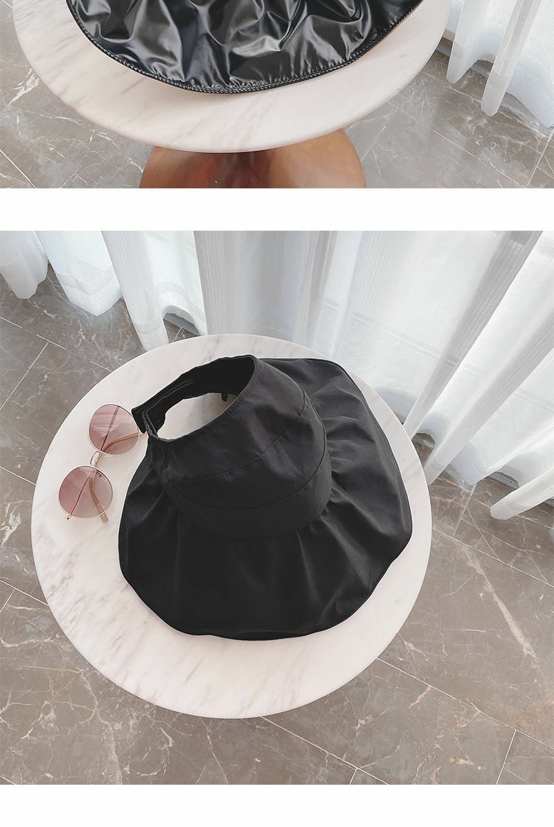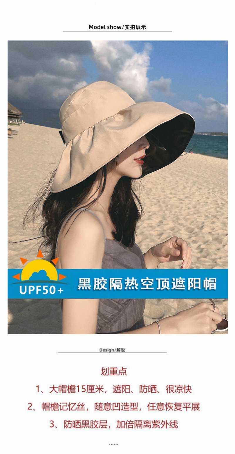 帽子女夏UV防晒帽防紫外线黑胶空顶帽大沿遮脸遮阳沙滩太阳帽