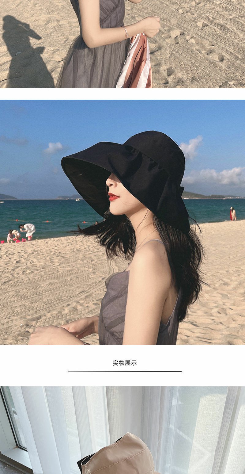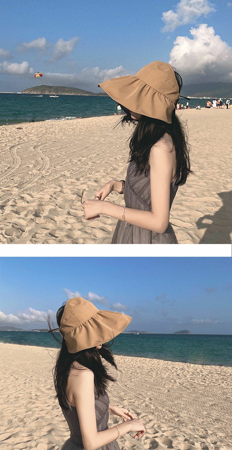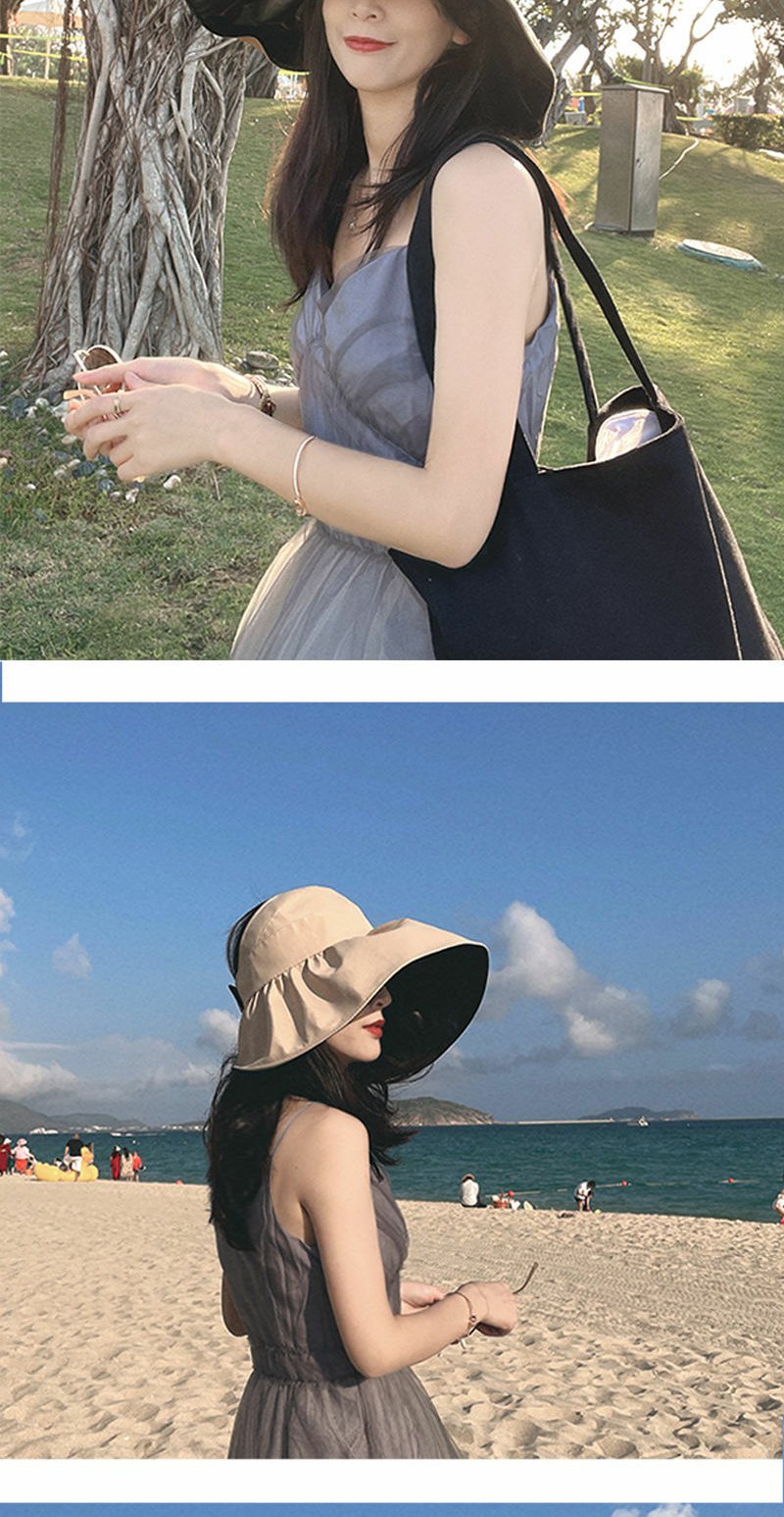帽子女夏UV防晒帽防紫外线黑胶空顶帽大沿遮脸遮阳沙滩太阳帽
