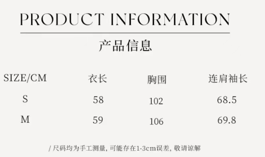 S衣长58cm,胸围100cm,袖长60cm