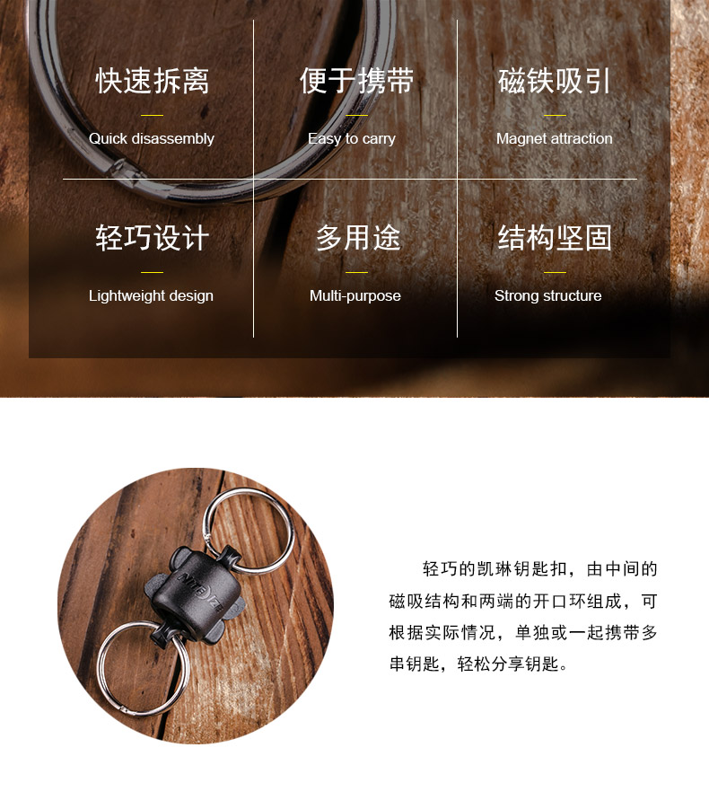 美国niteize磁吸钥匙扣快挂多功能扣户外钥匙挂钩快拆钥匙扣