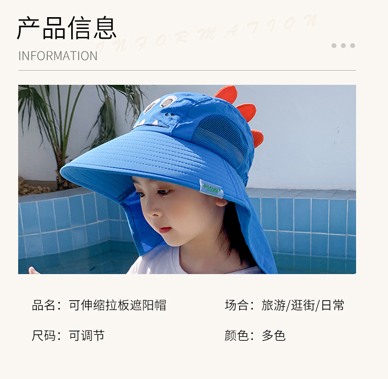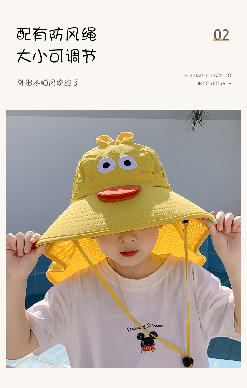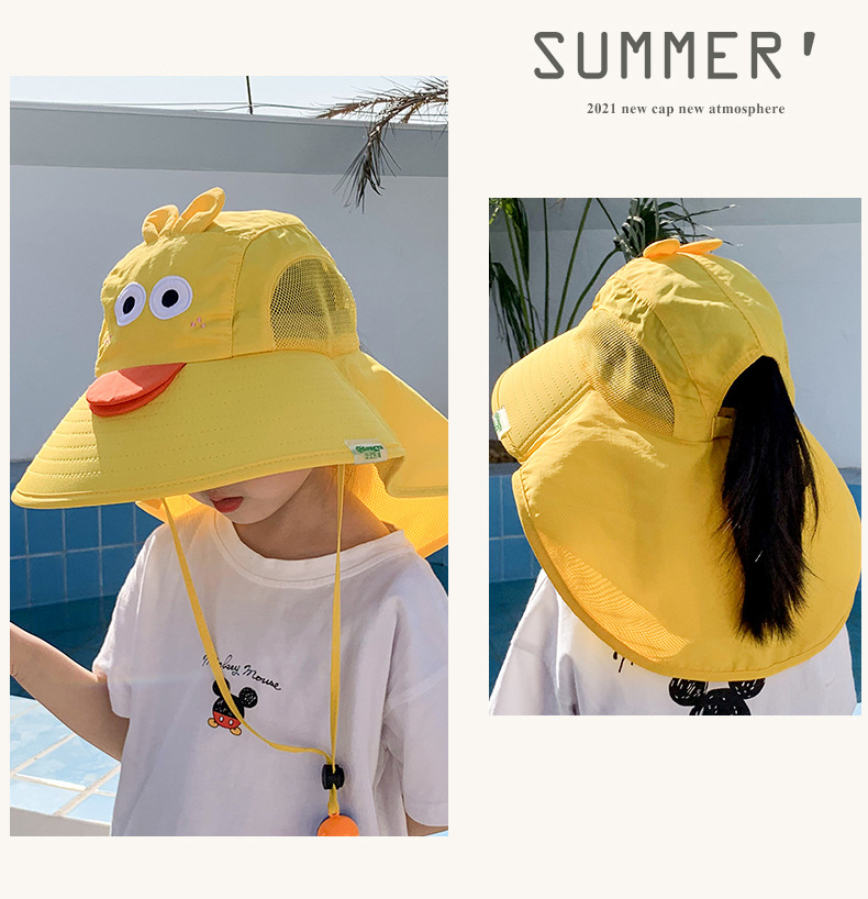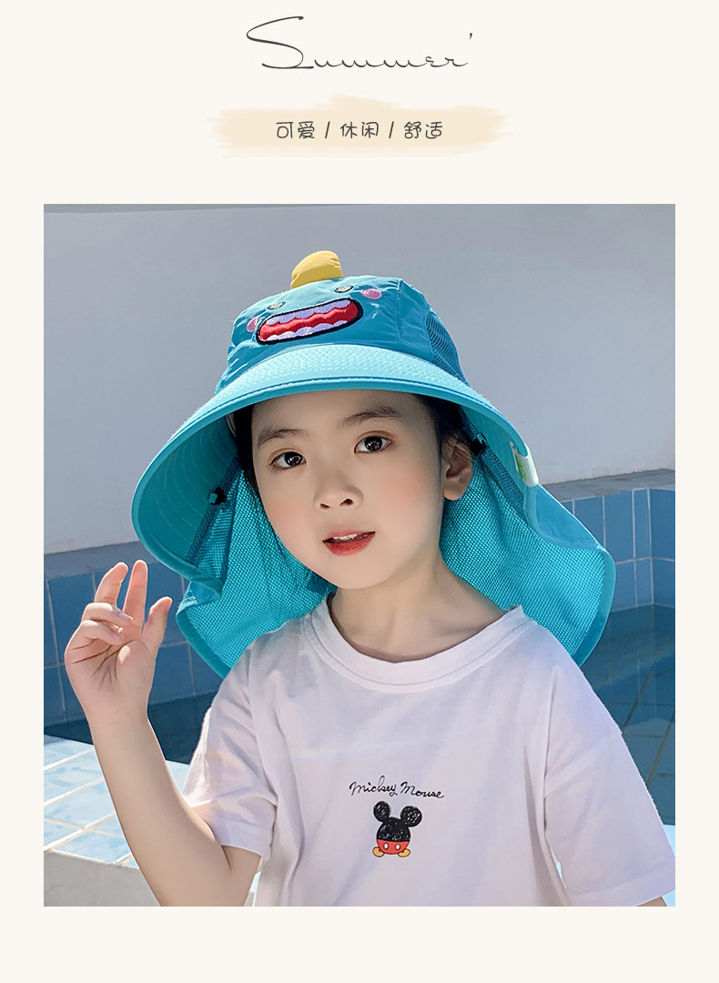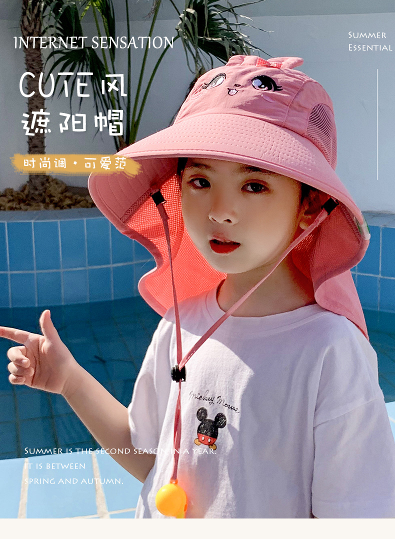 【多重防晒 可爱百搭】户外儿童防紫外线遮阳帽可爱太阳帽男女夏季护颈防晒渔夫帽 大檐帽