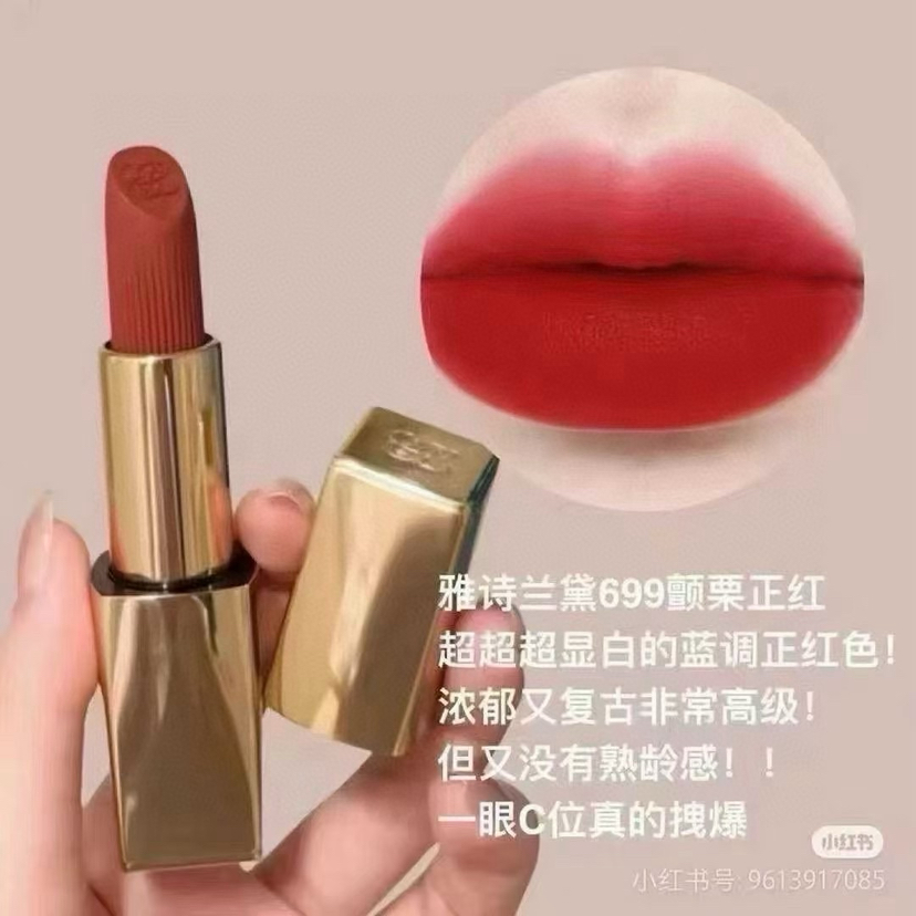 ¥299/2支🇺🇸雅诗兰黛口红699#带盒#699颤栗正红 是超超超显白的蓝调正红色!橄榄皮赶紧冲!浓郁又复古非常高级!