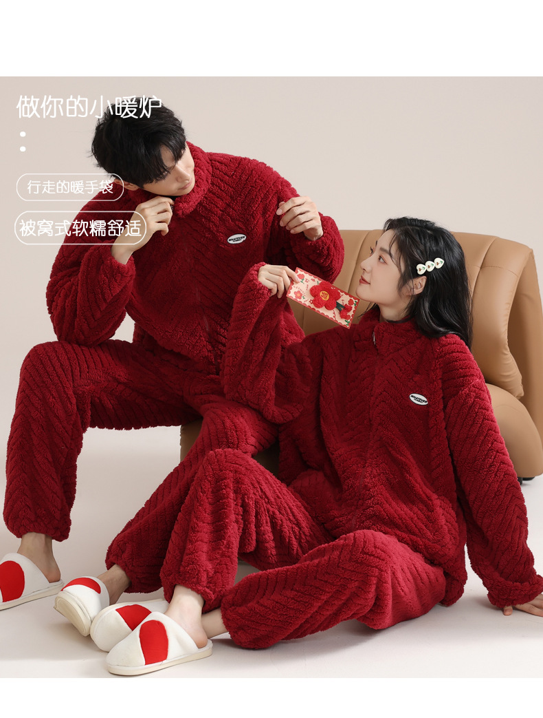 【穿红“吸”好运❗️法兰绒家居服套装】暖暖绒意,加绒加厚,如冬日小暖炉般!2026马年本命年红色女冬季珊瑚绒睡衣喜庆结婚情侣
