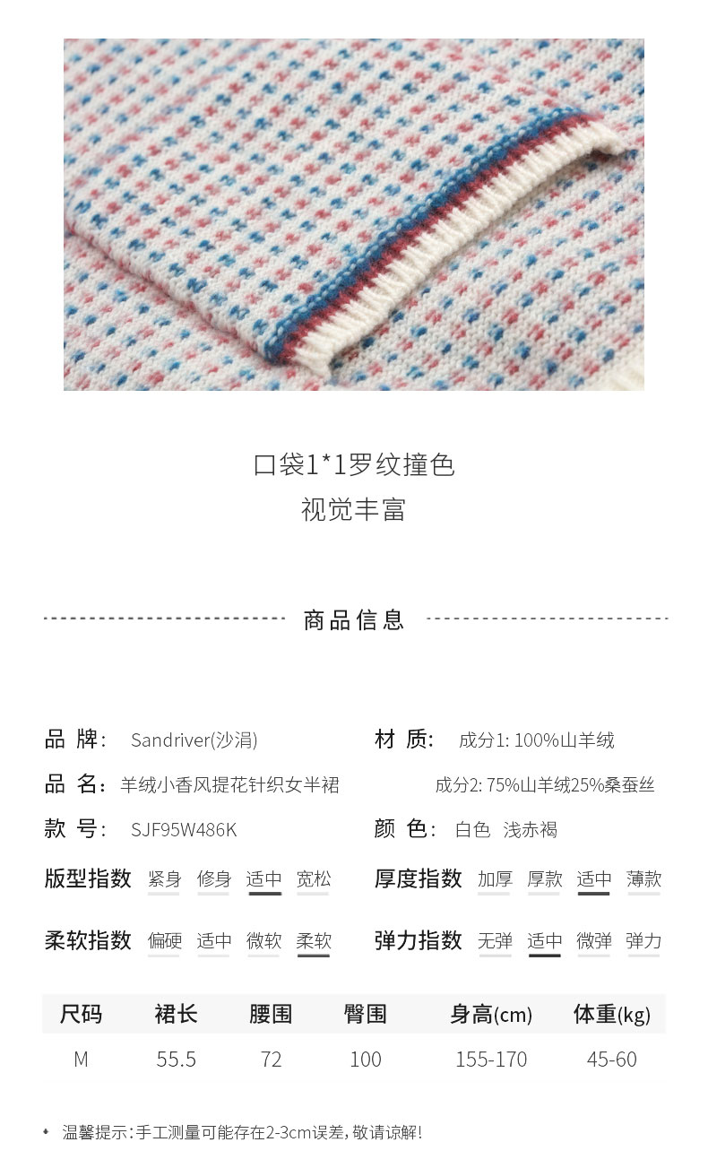 历年在巴黎时装周亮相,享誉世界的艺术羊绒品牌[Sandriver 沙涓]由羊绒布道者郭秀玲女士创立。阿拉善自有牧场纯种羔羊绒,日本国宝设计师小筱顺子,上海自有基地精工细作。承载羊绒情怀,坚持匠人品质。