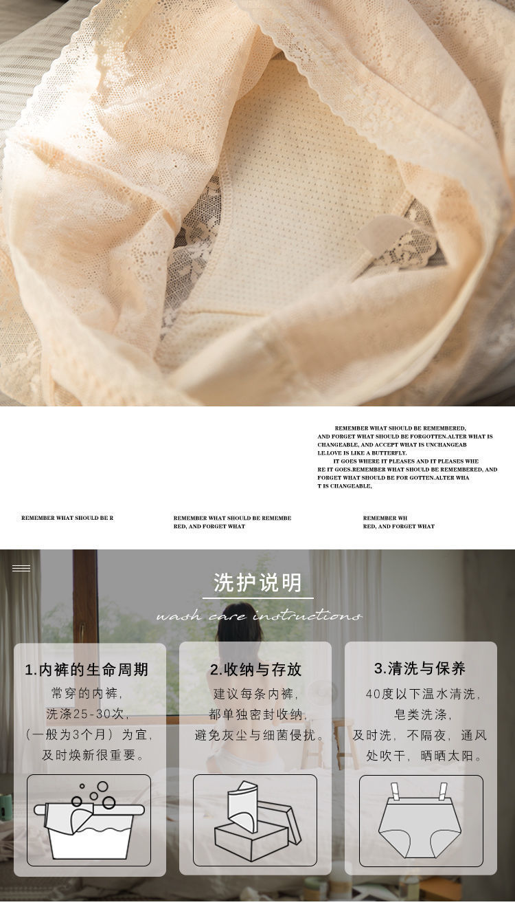 温馨提示:内裤为贴身衣物,非质量问题不支持无理由退换,敬请谅解!因特殊原因需要退换的请保持产品干净整洁,无灰尘等污渍,如有污渍仓库会选择拒收哦~感谢您的配合与理解。