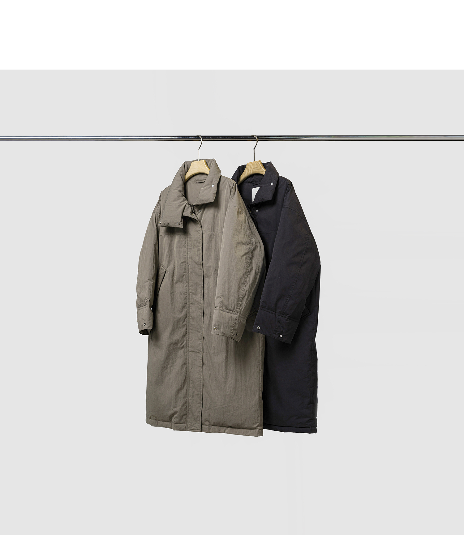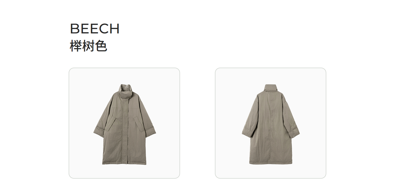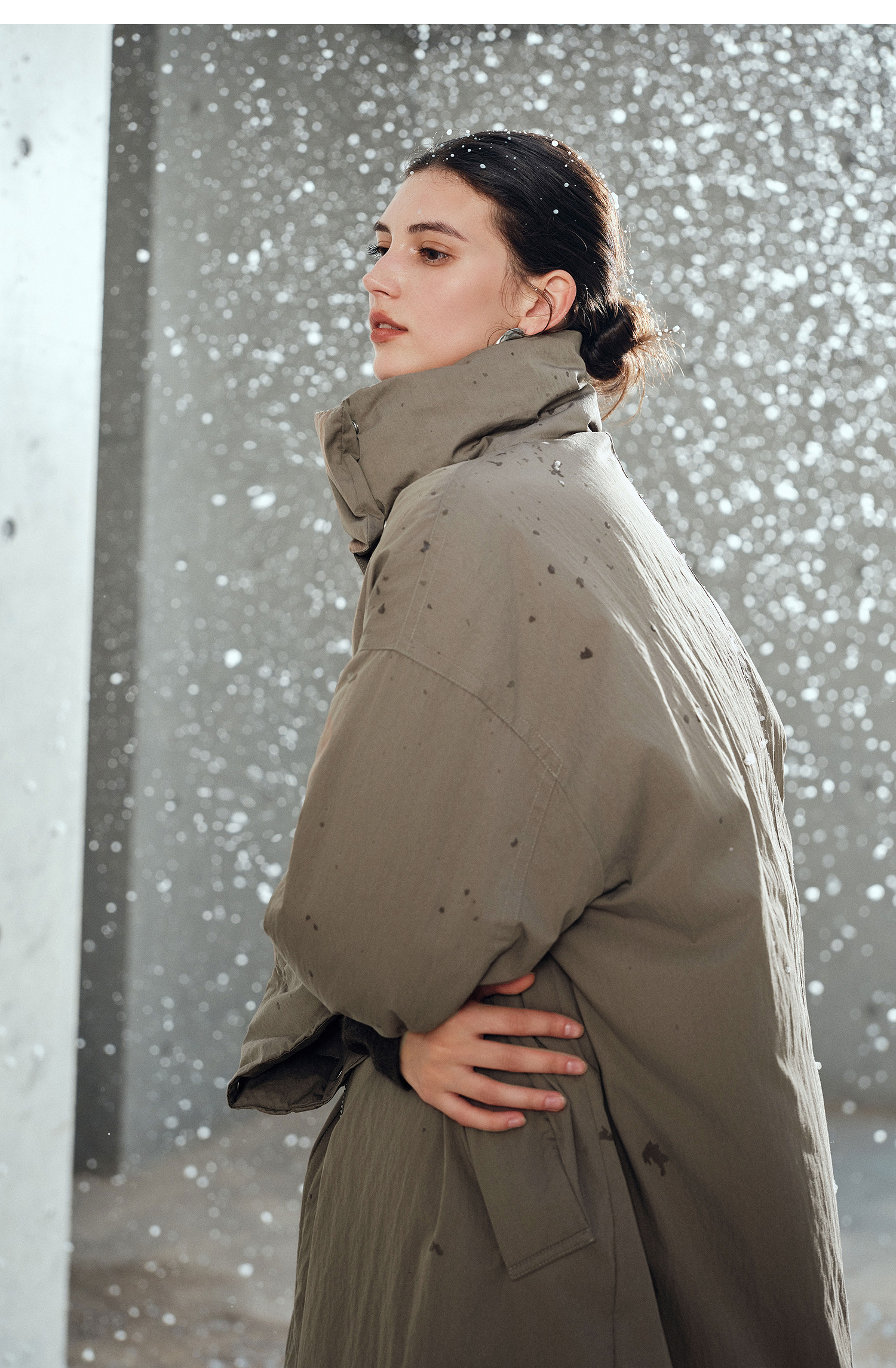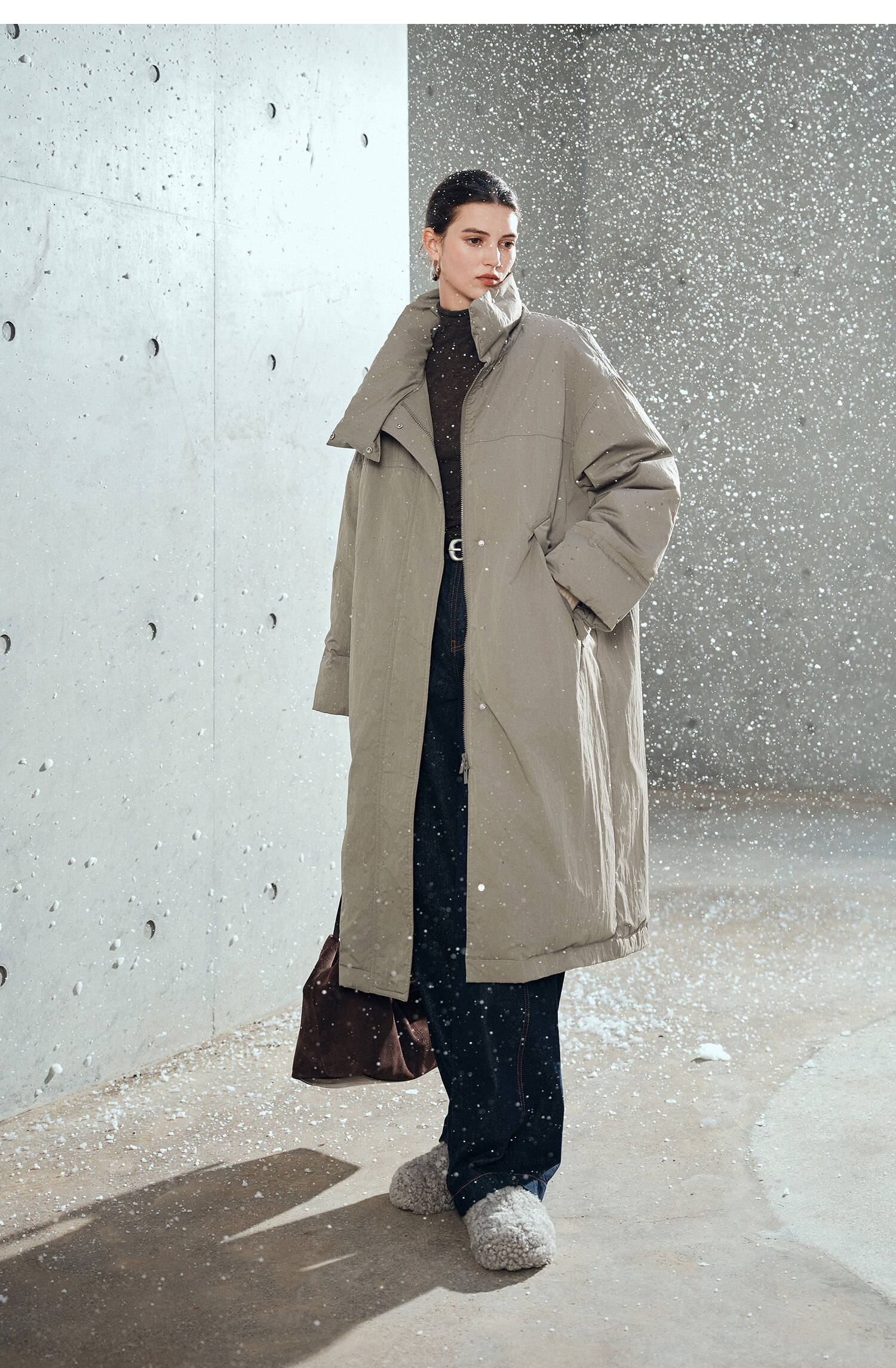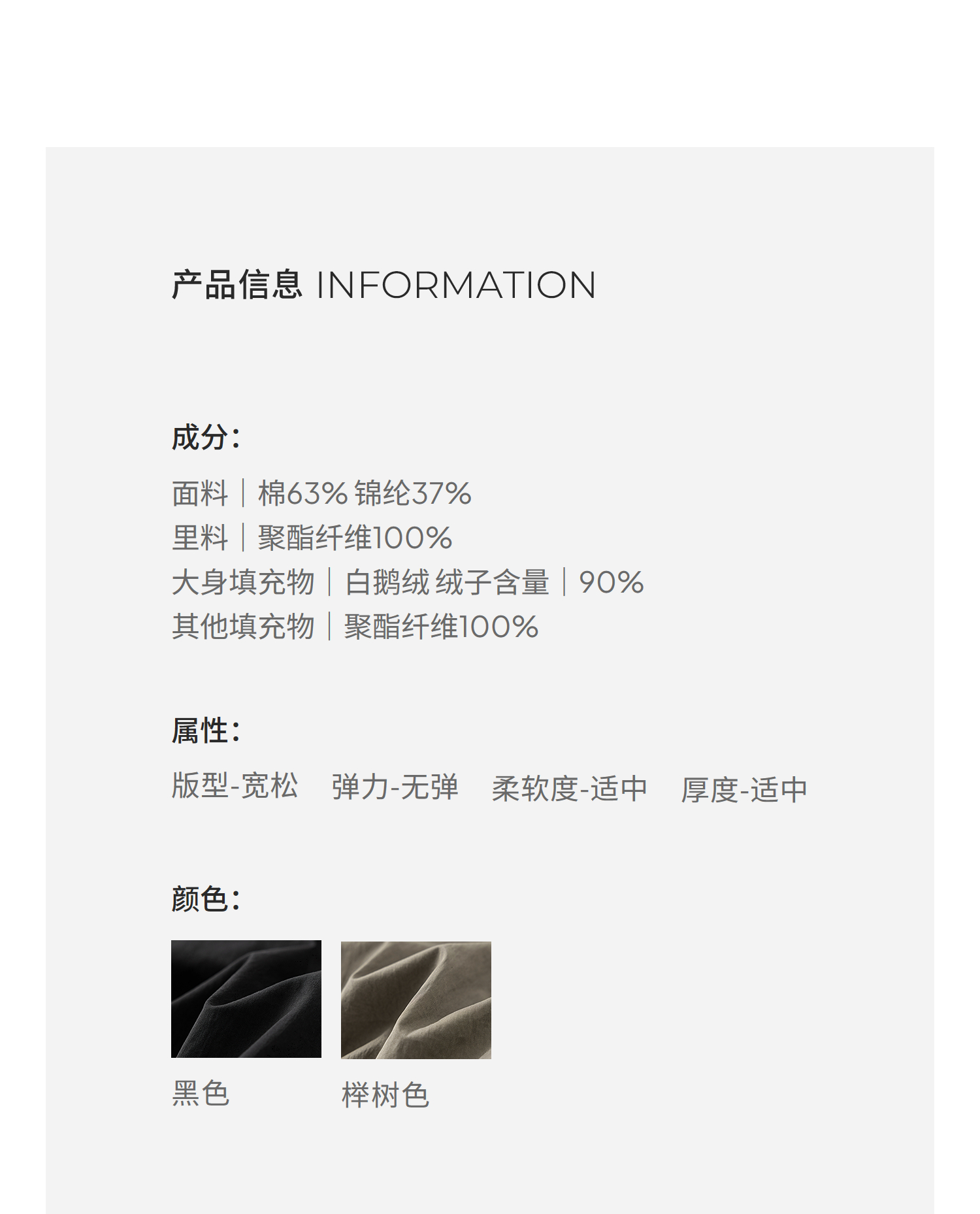 棉仓367615003-【90白鹅绒】立领风衣黑色羽绒服女中长款肌理感无绗线鹅绒服
