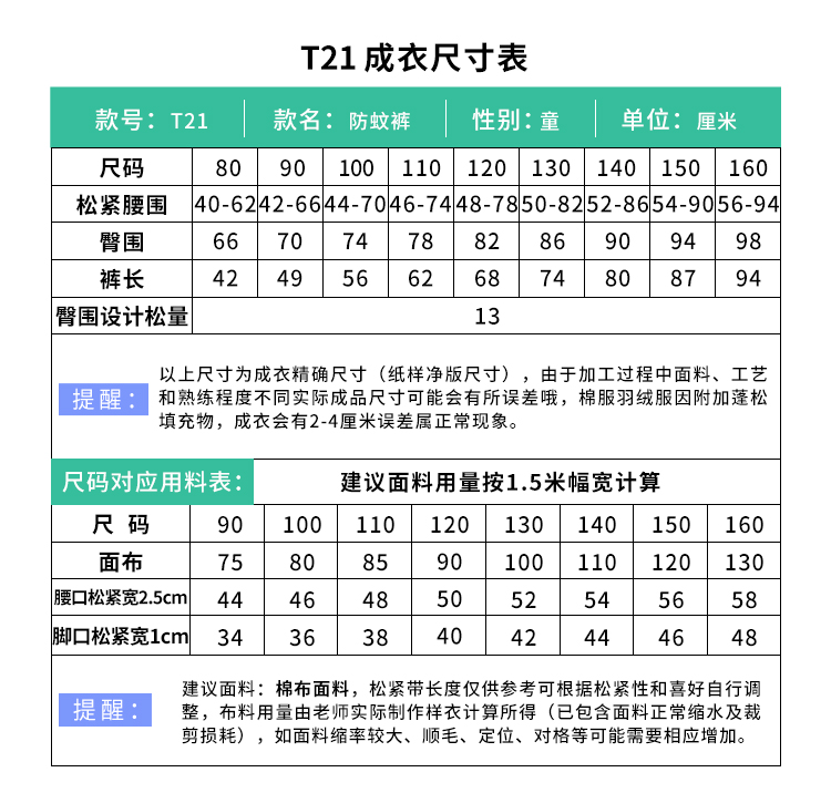 裁缝学苑 T21灯笼裤防蚊裤1:1实物服装纸样 剪裁图纸 牛皮纸