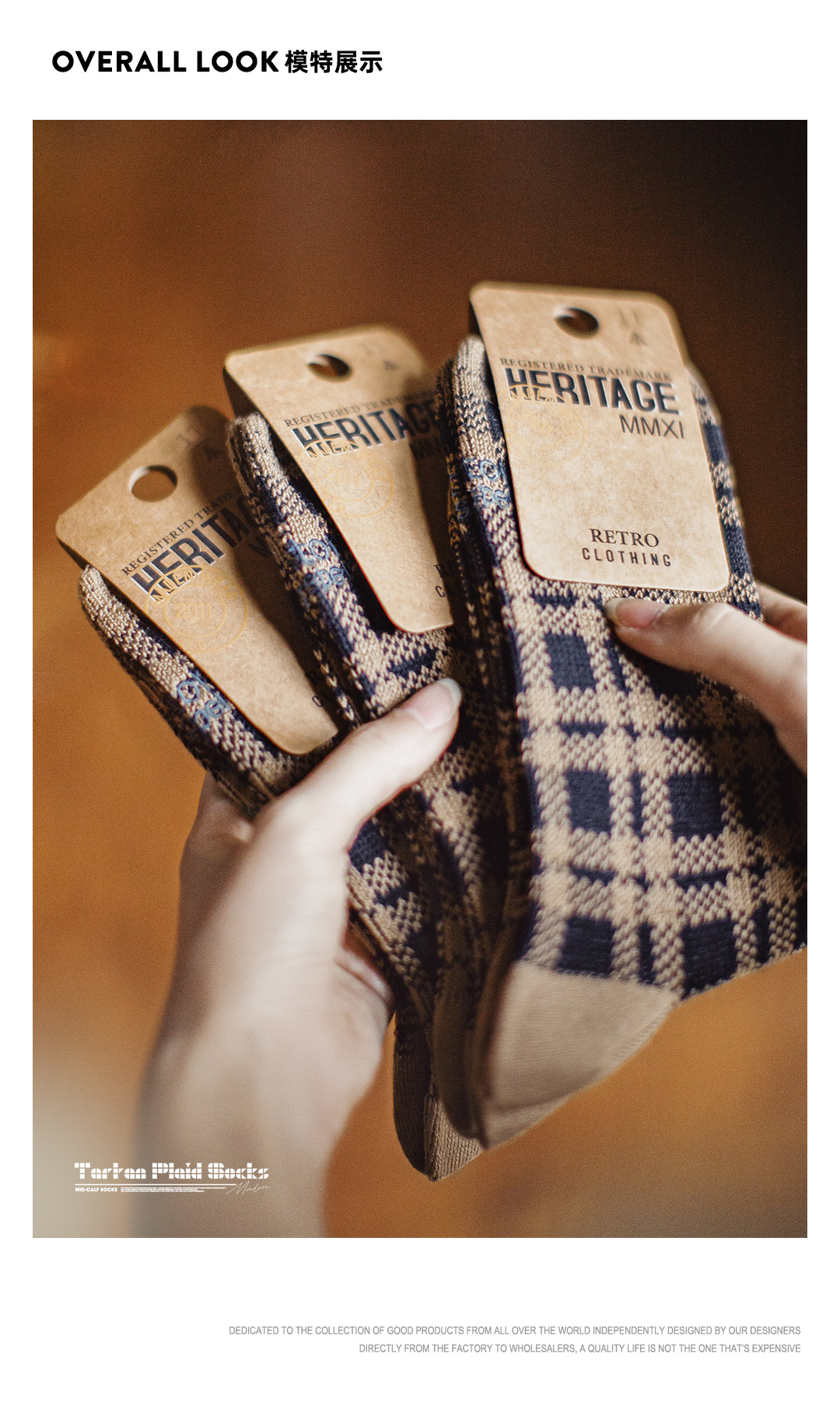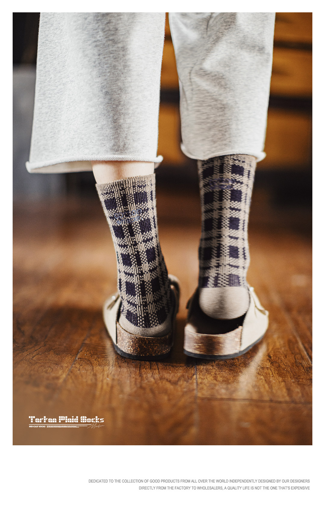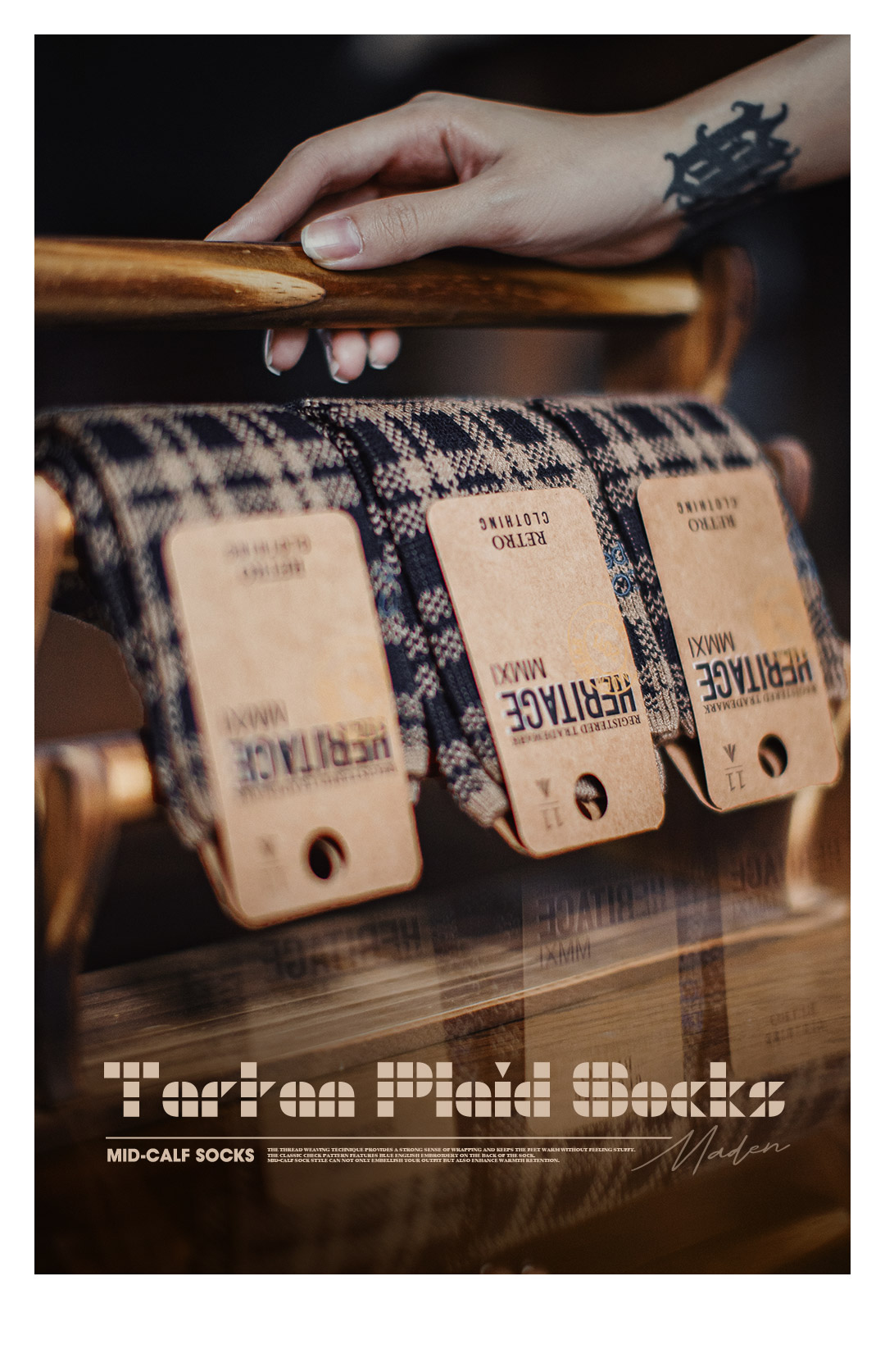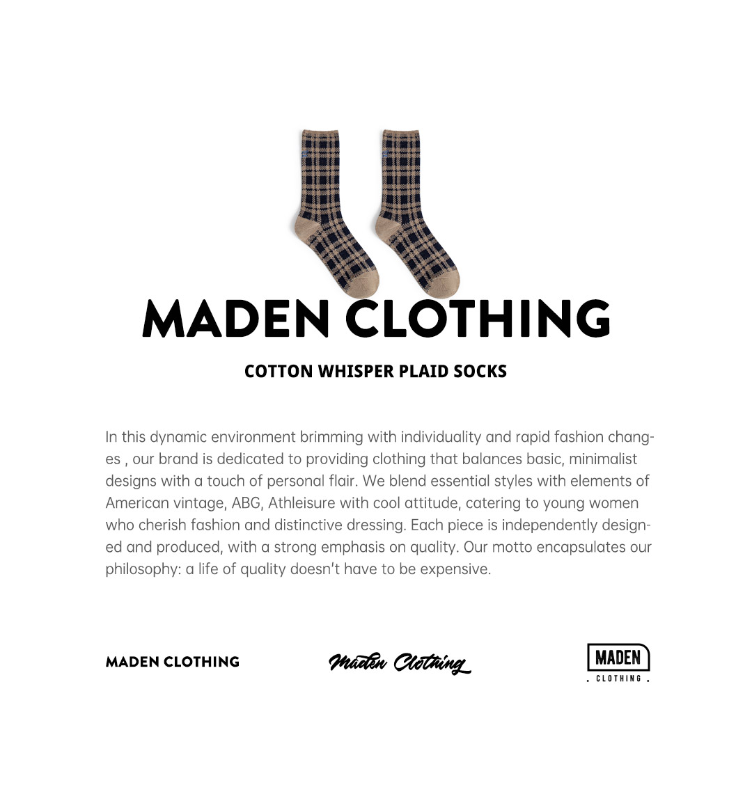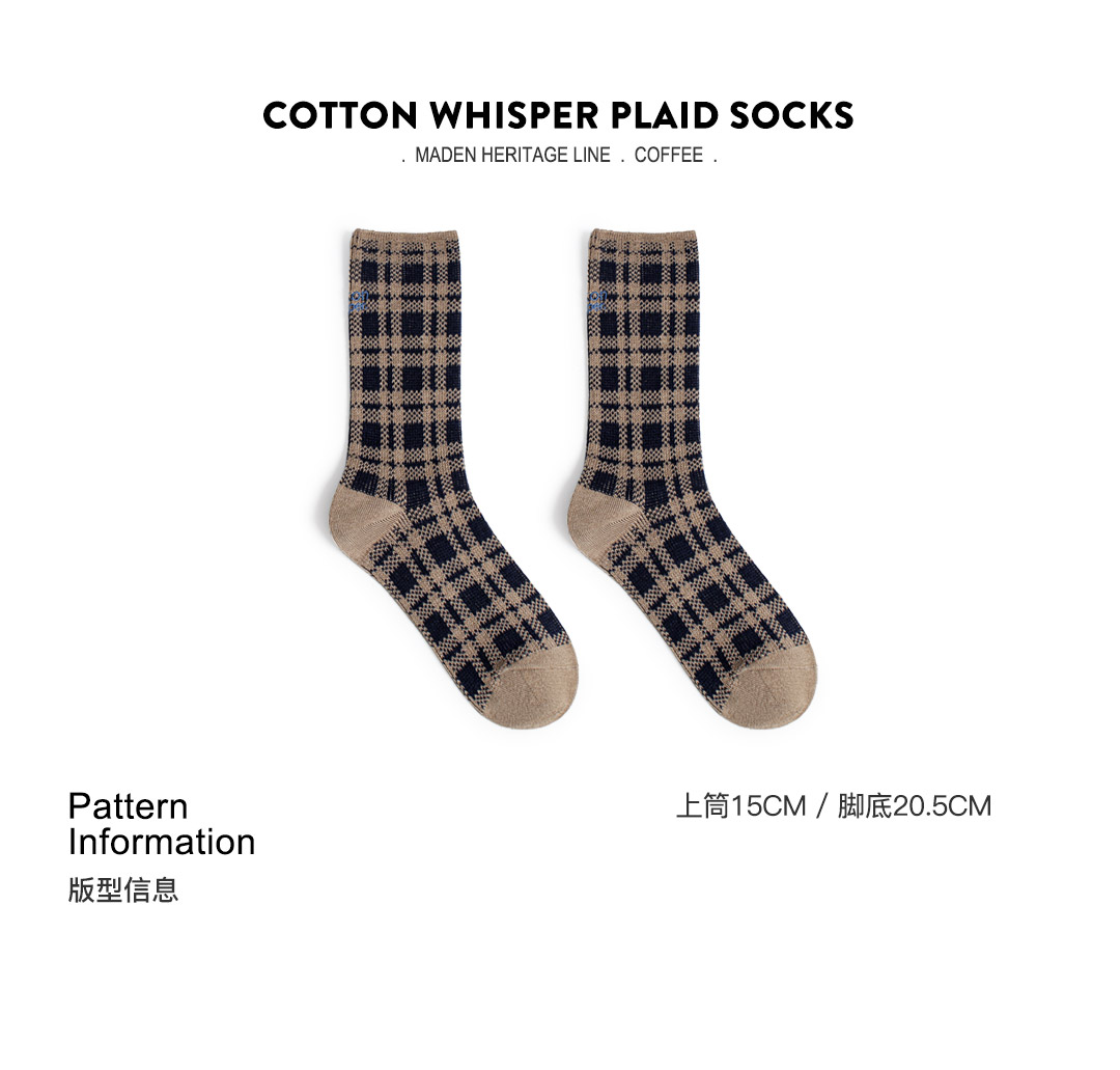 马登美式复古咖色针织刺绣格纹保暖中筒无骨厚堆堆长袜子女士秋冬