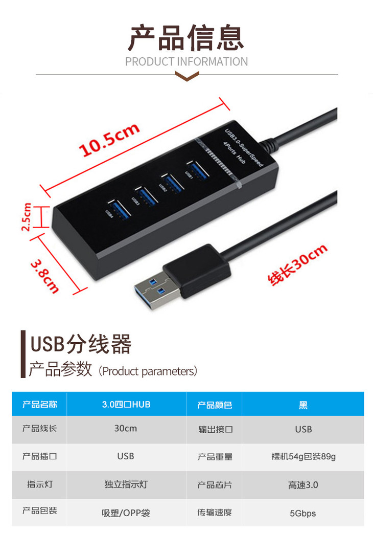 【敏龙定制】USB 3.0高速分线器/多接口一拖四/传输更专业