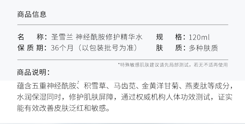 【自营】圣雪兰 厚脸皮水120ml 敏感肌梦中情水 多重神经酰胺 半小时快速退红