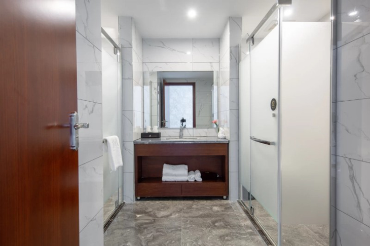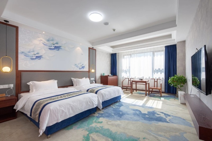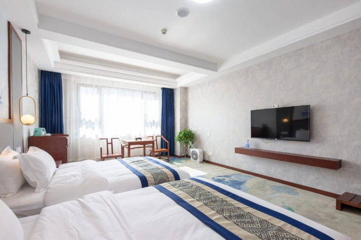 四星标准的客房是中式风,中式座椅茶几、中式吊灯,宽敞明亮,典雅温馨。