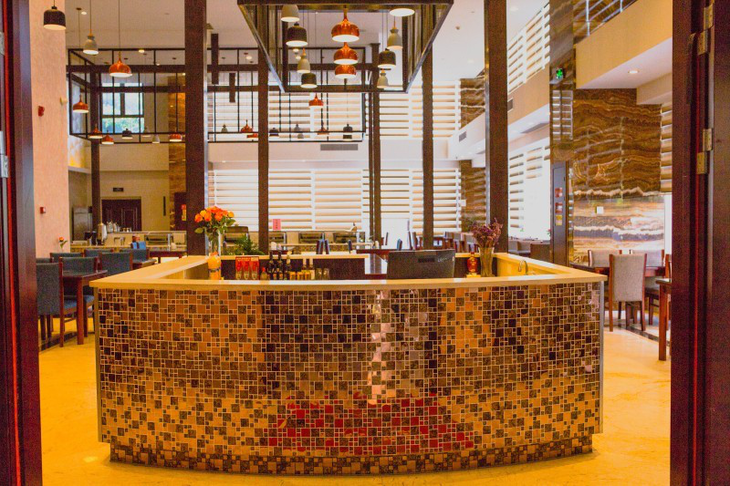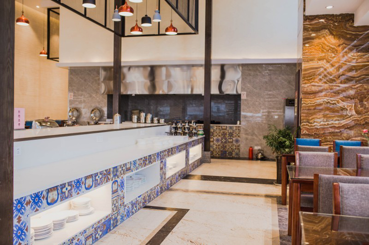 位于酒店一楼的早餐厅极具工业美感,黑色钢架、铜色吊灯、原木西餐桌、落地大窗,让您吃营养早餐、拍照打卡两不误!