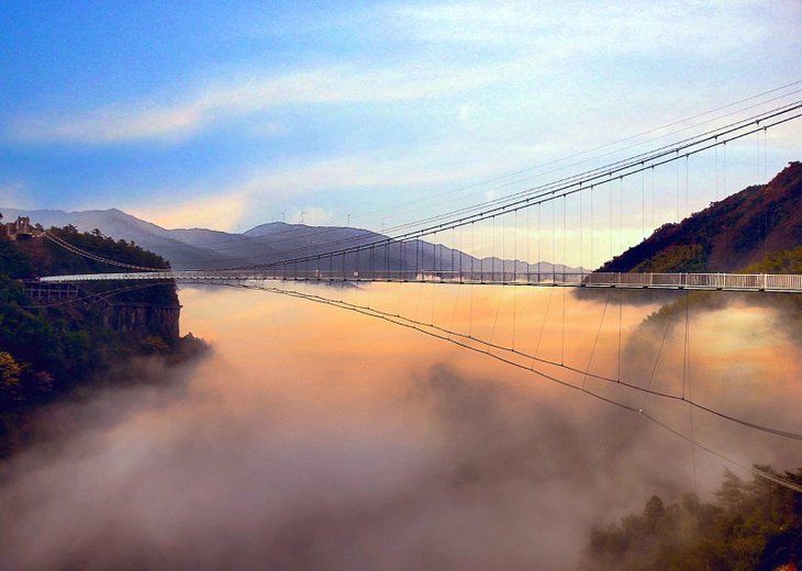 2018年初开放的华东第一高空玻璃桥,全桥跨度约365米,垂直高度约189米,桥面总宽2.8米。 (需自费)