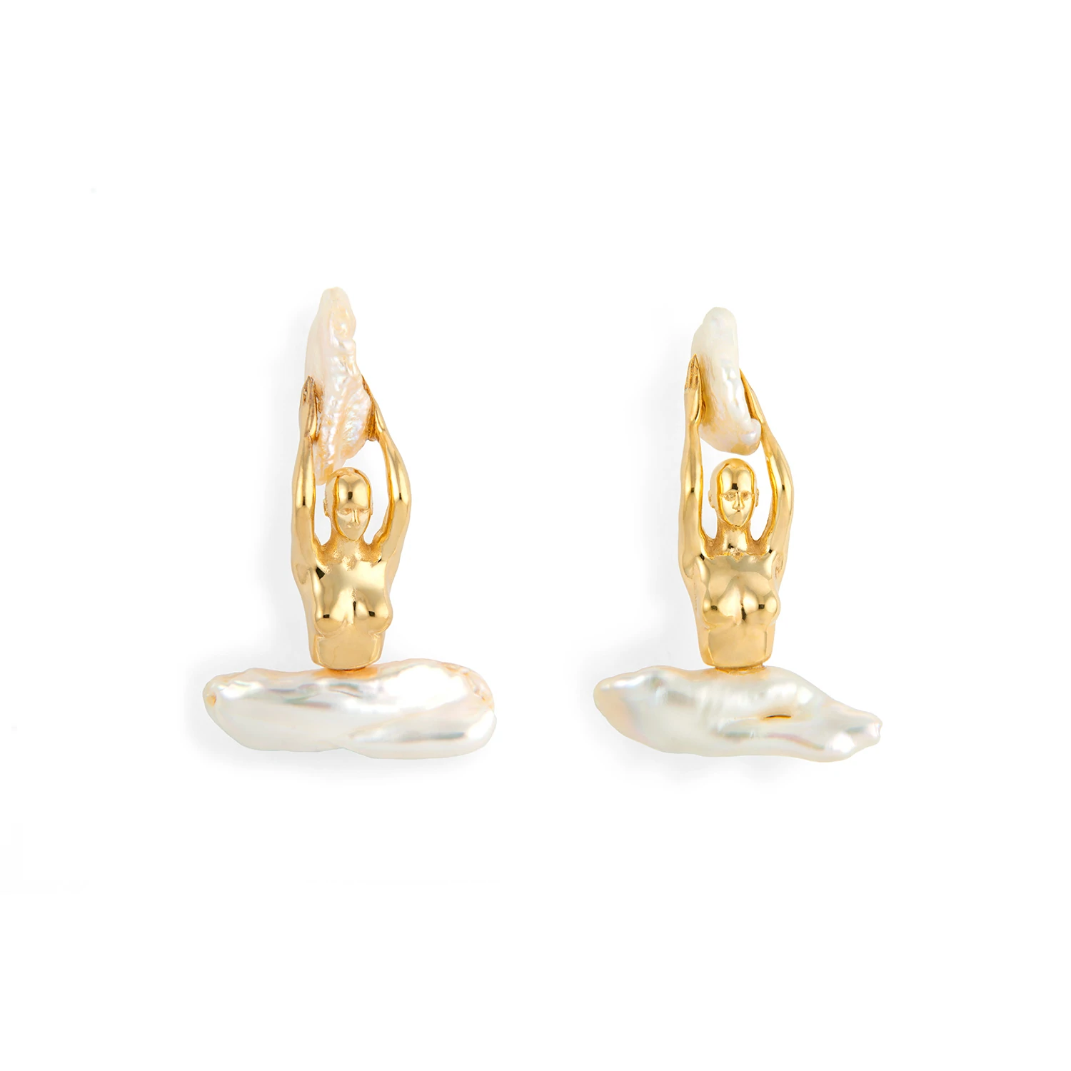 北京仓|Paola Vilas-Greta-人体 雕塑 珍珠 耳环[巴西设计师]