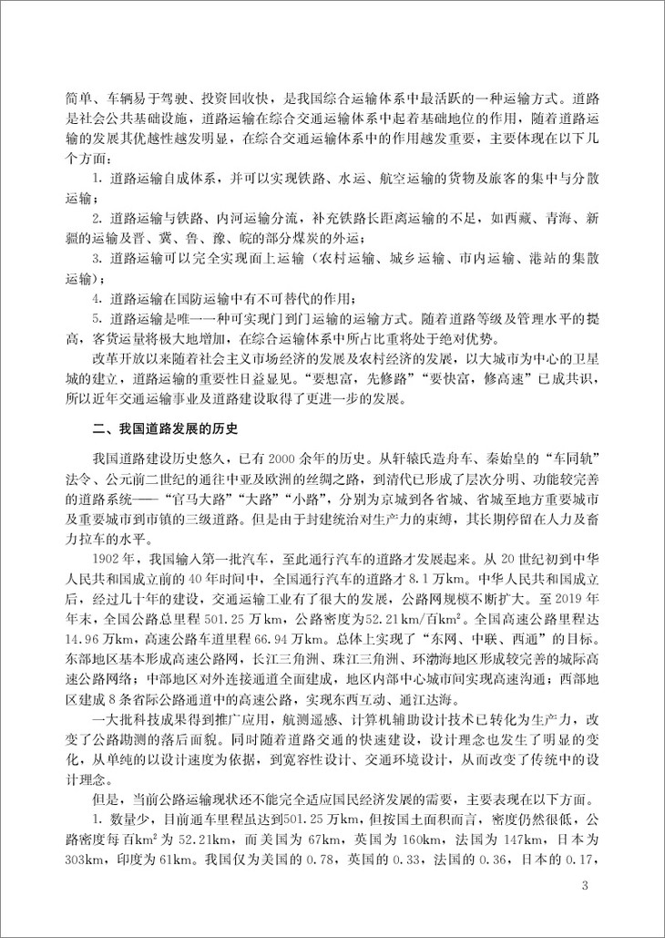 改革开放以来,我国的国民经济持续快速发展,道路工程建设事业取得了举世瞩目的成就。目前,我国社会经济发展到了新的历史起点上,中国特色社会主义进入了新的发展阶段,这对道路工程建设及其科学技术发展提出了更高的要求。交通强国战略的实施,使公路与城市道路等交通基础设施建设事业成为社会发展的基础产业,掌握道路工程的专业知识是对现代土木工程师的基本要求。