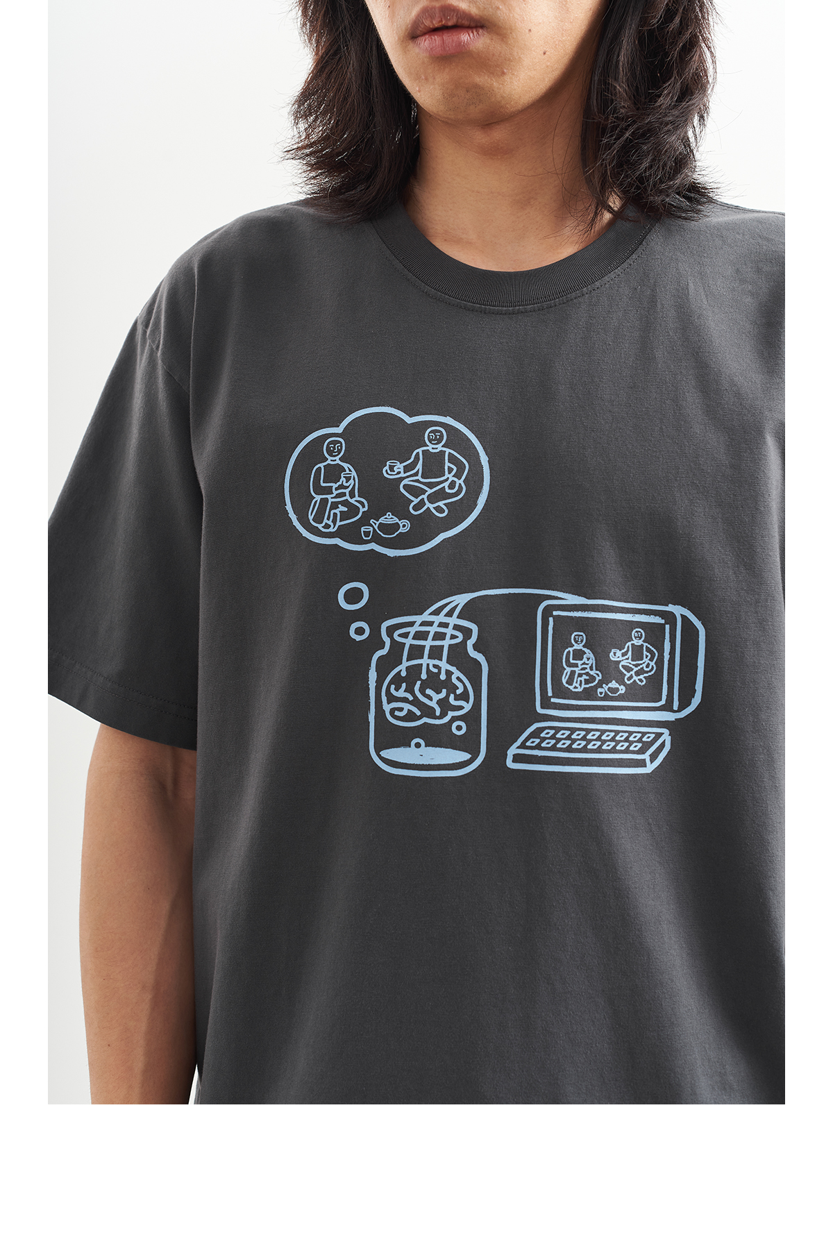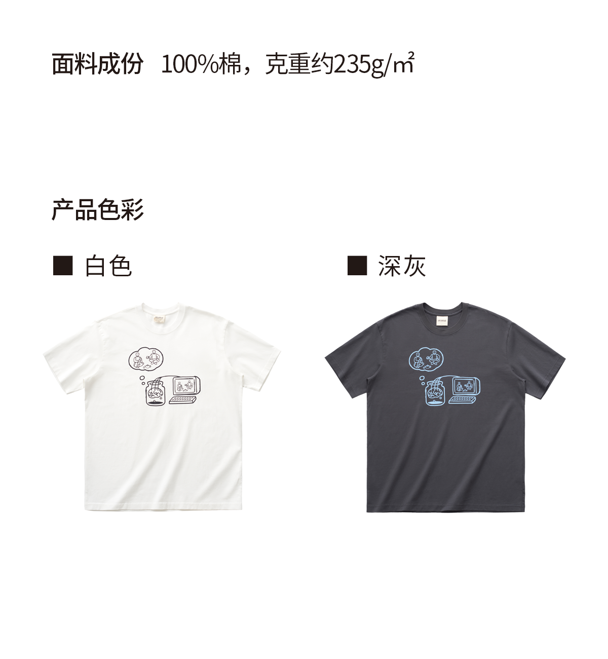 吃茶去chichaqu2024新款全棉圆领短袖T恤男女宽松印花虚拟饮茶