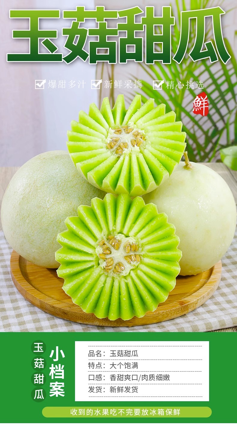 新鲜水果 甜而不腻 软滑多汁 玉菇甜瓜 1枚