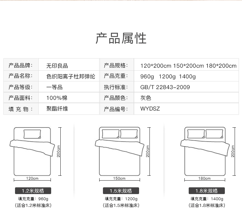 色织阳离子床褥杜邦弹纶120200灰色 无印良品