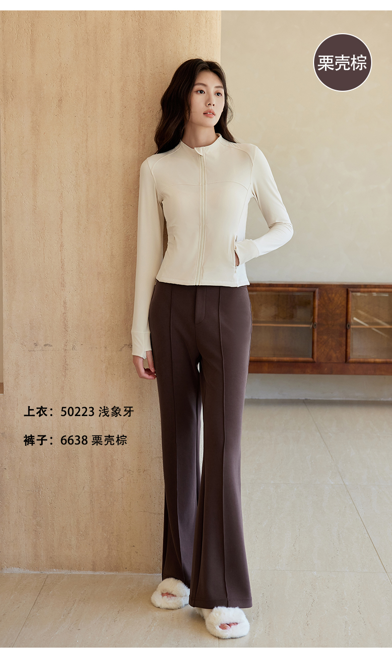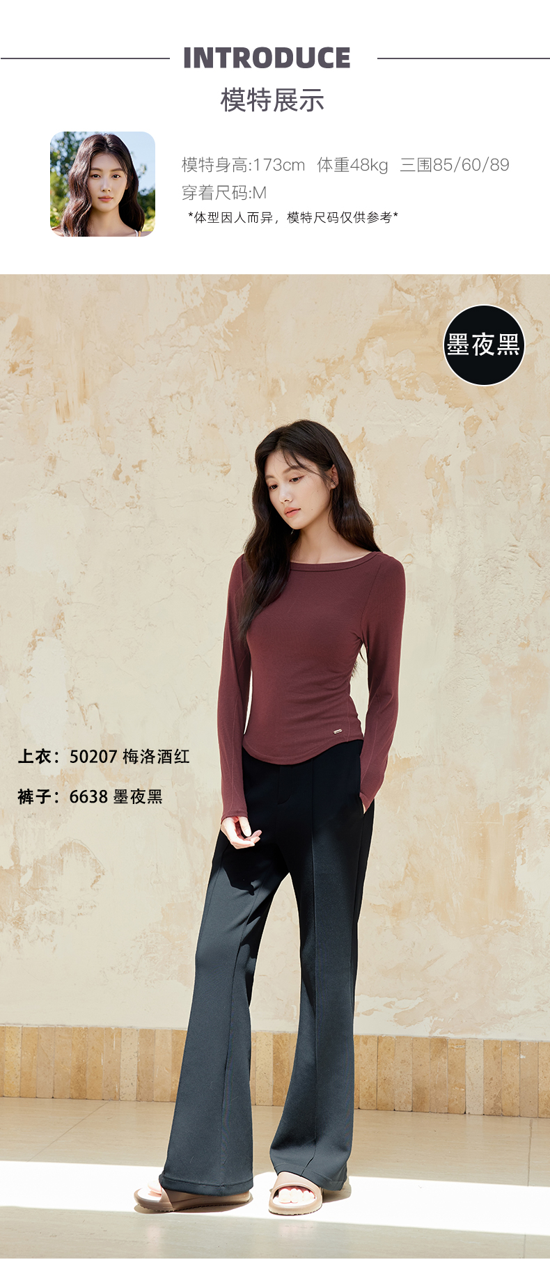 SMOEDOD/水沐伊朵垂感休闲喇叭裤高腰常规哑光轻职风秋冬季6638