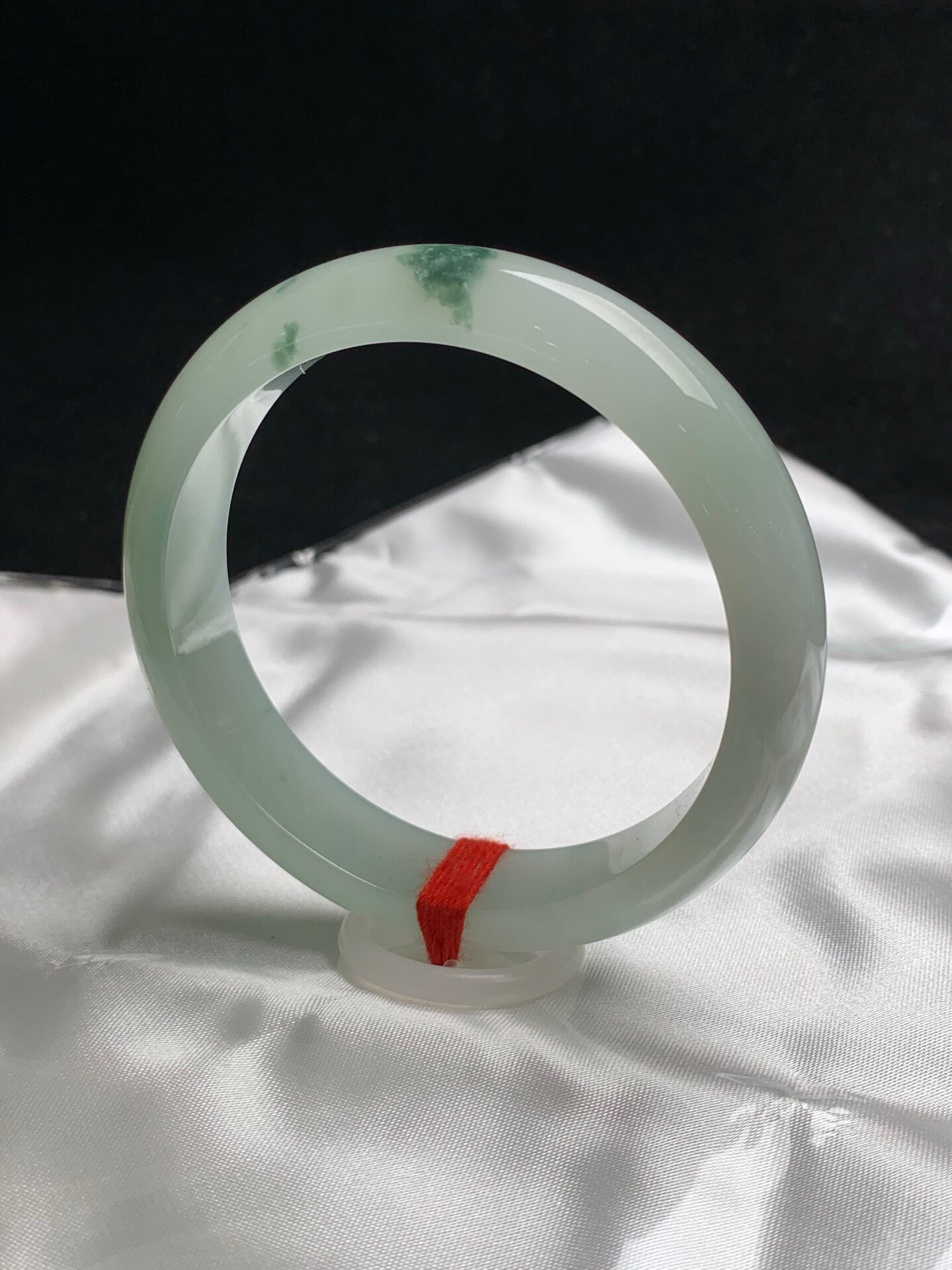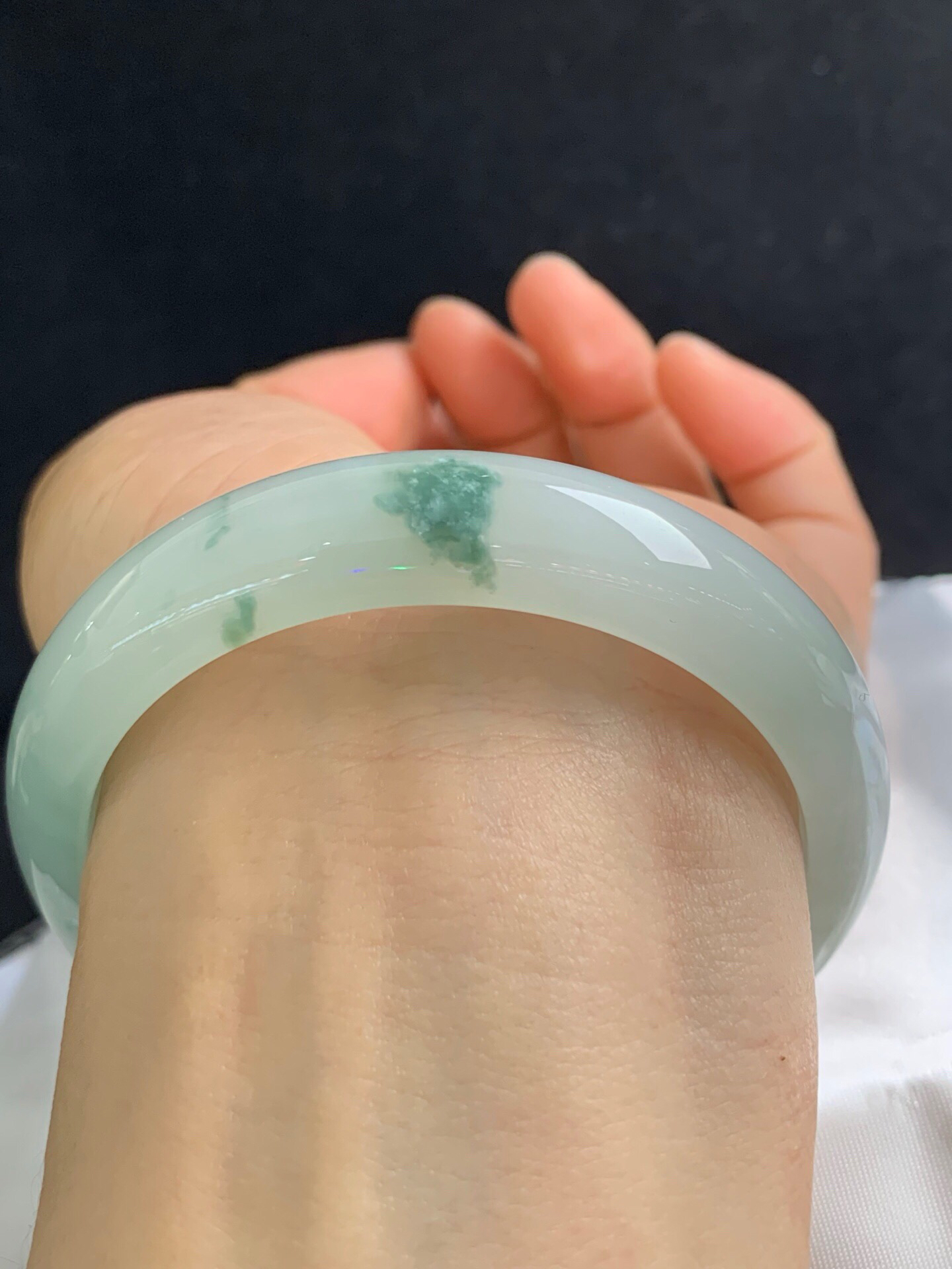 612554,57.8圈口,冰飘花正圈平安镯,冰晴底飘花,底子胶润有光感,完美无裂,尺寸:57.8-13.3-7.6,超值价💰27000 #优石客珠宝#香玉荟萃