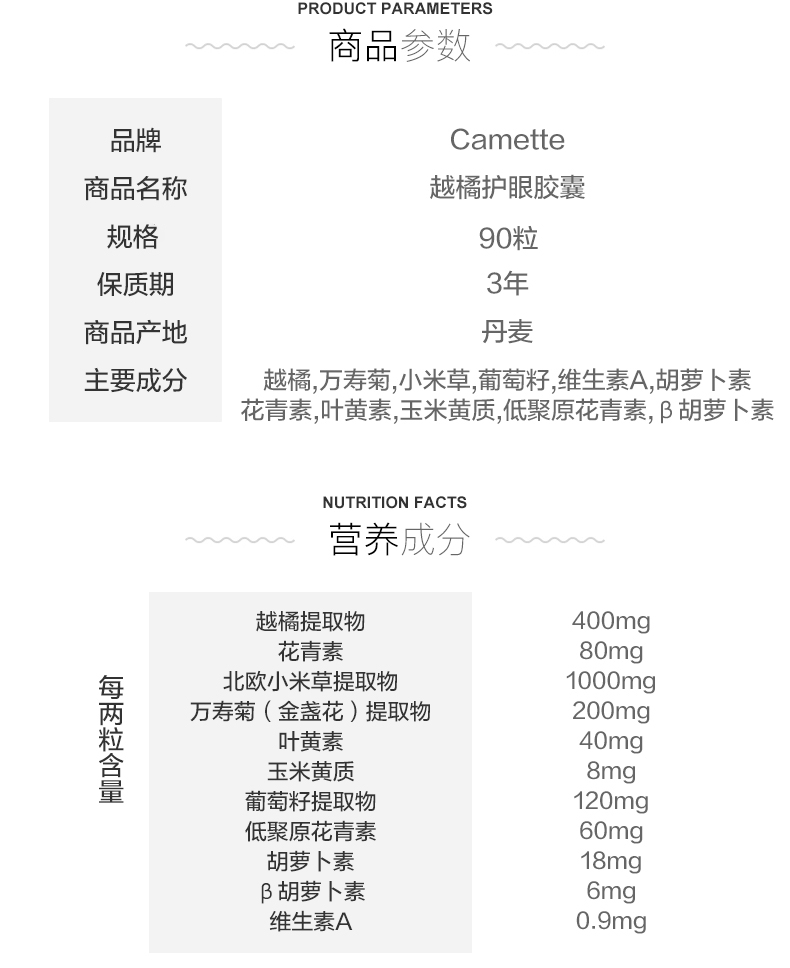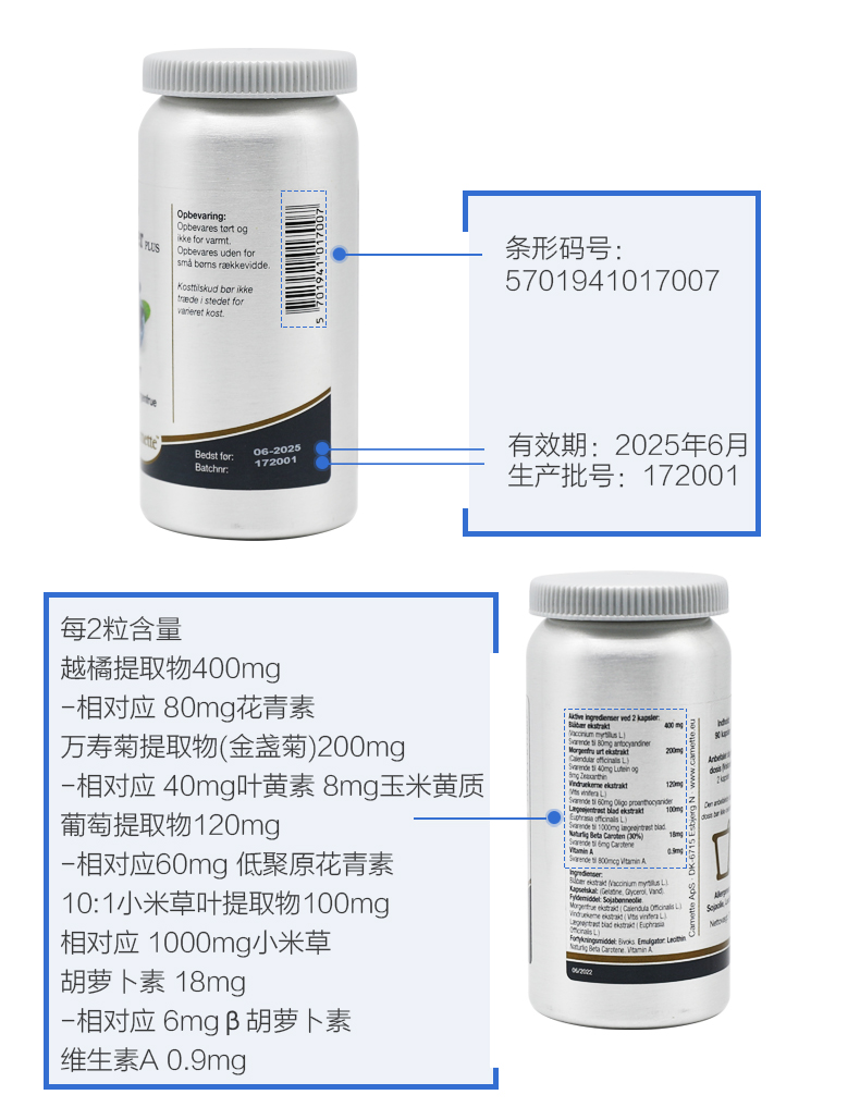 新升级 · 丹麦Camette 蓝莓+越橘 护眼精华软胶囊90粒|保税 品牌直发